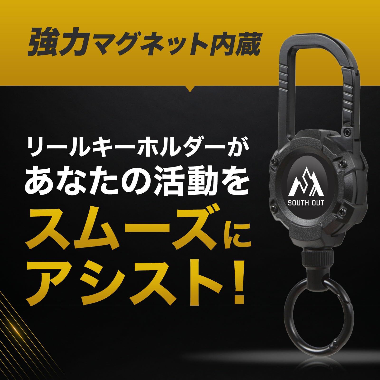 リールキーホルダー 【強力マグネット内蔵型】 キーリール カラビナ キーホルダー 金属ワイヤー 伸縮自在 HYBRID