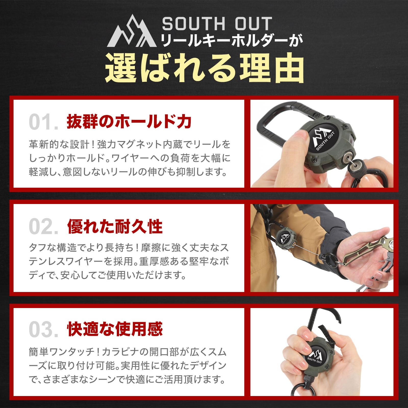 【人気】リールキーホルダー 【強力マグネット内蔵型】 キーリール カラビナ キーホルダー 金属ワイヤー 伸縮自在 HYBRID
