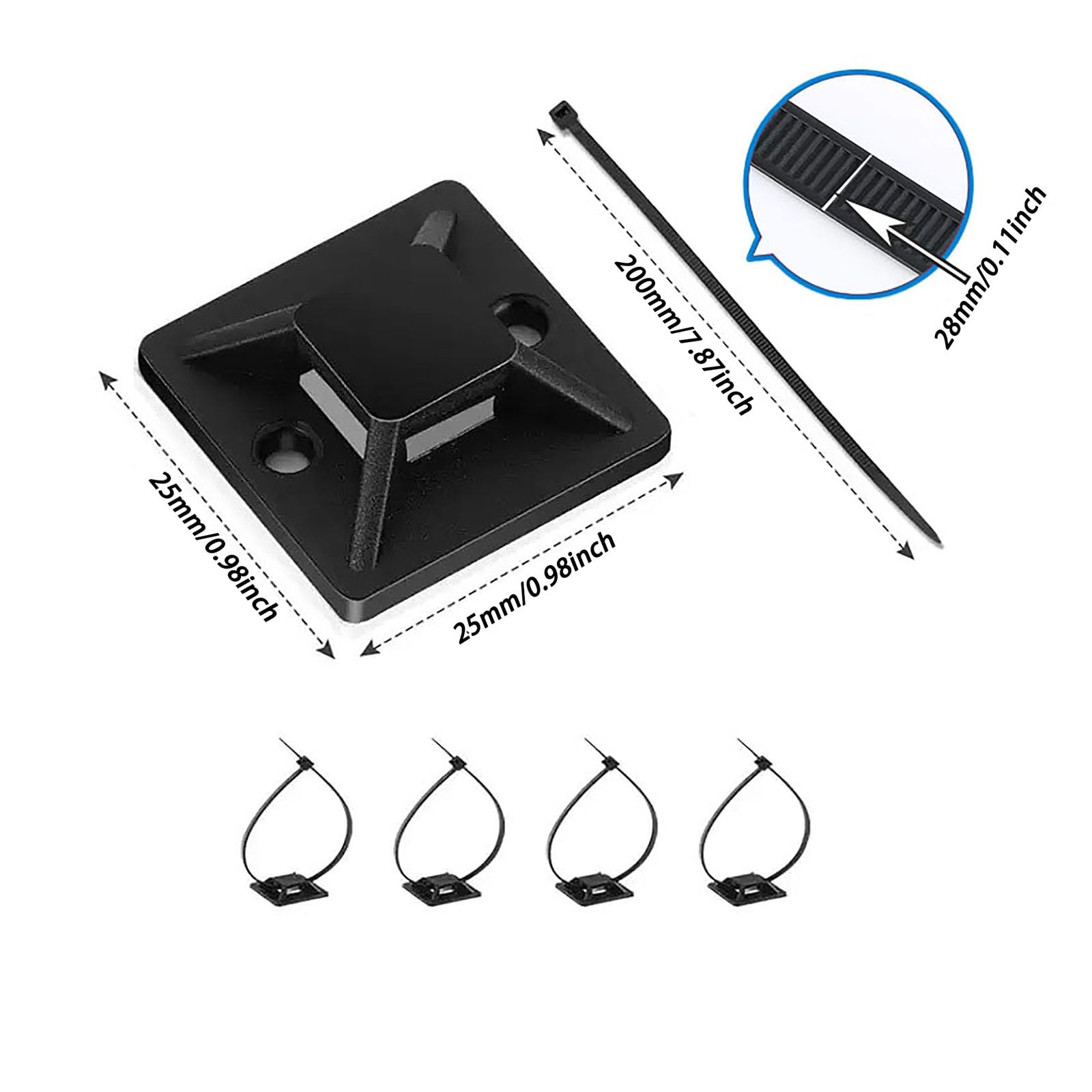 ケーブルタイ マウントベース 25mm*25mm 配線固定ツール ナイロン結束バンドセット ナイロンケーブルストラップ ケーブル管理 強力粘着テープ付き配線 固定具 ケーブル コード収納 整理 耐熱性 耐久性 固定ベース 【50個セット】ホワイト
