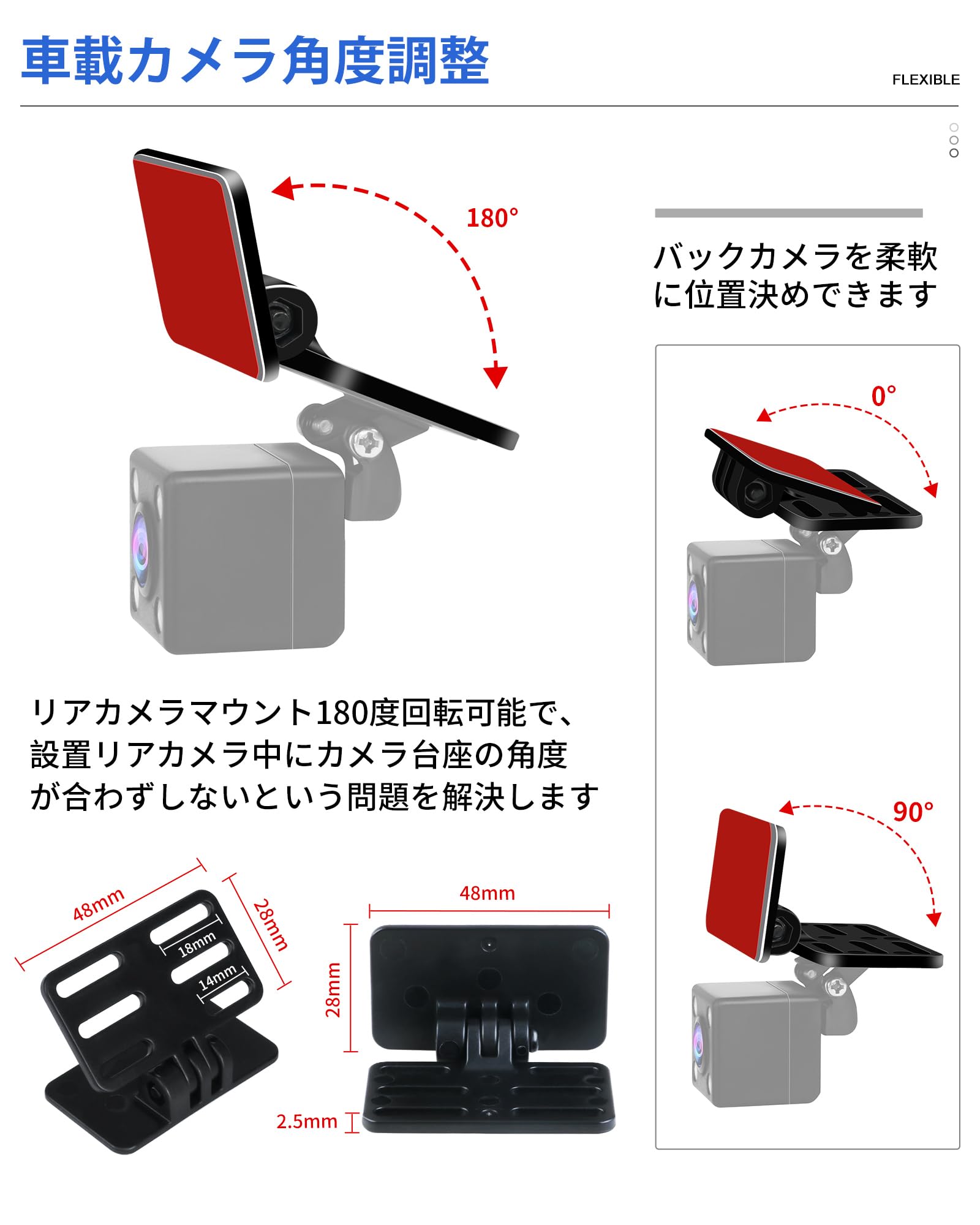 多用途:リアカメラだけでなく、GPSアンテナ、取り外し可能なフロントカメラ、カーカメラなどの取り付け位置やレンズ方向の調整にも使用できます。 リアガラスに加えて、リアドアアッパートリムやリアクォーターガラスにも取り付けることができます。ほとんどのリアカメラに対応する2本のネジ。