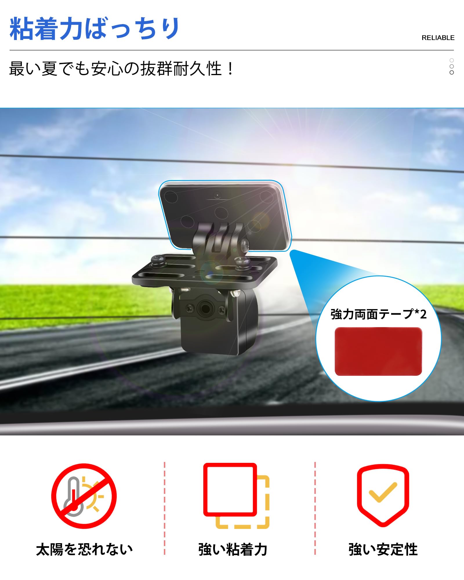 コンパクトなデザインと軽量:コンパクトなサイズで、リアカメラをしっかり固定できます。 リアガラスに取り付けても、はみ出さず、リアビューの邪魔になりません。