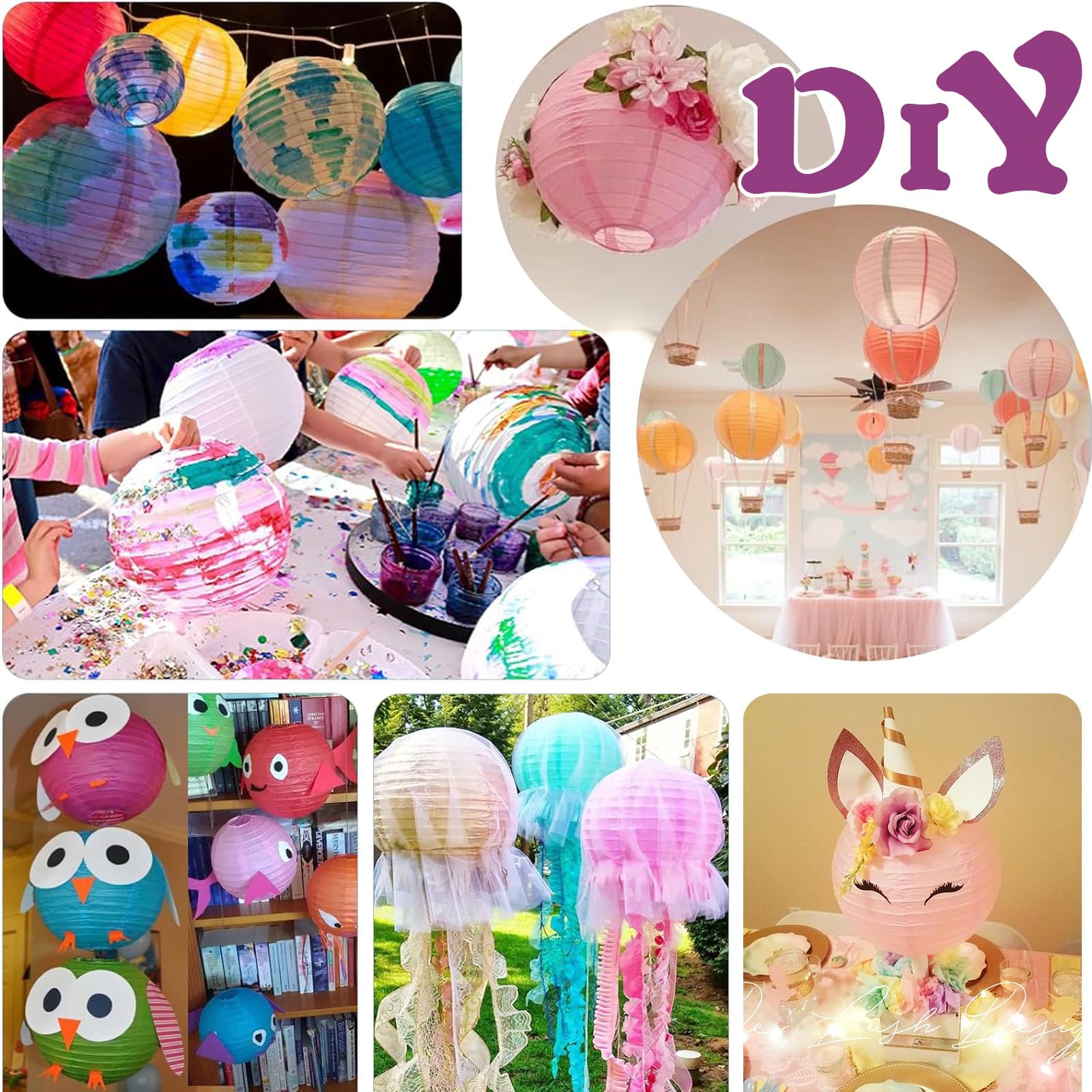 DARENYI 提灯 紙ちょうちん 30色30個セット直径15cm 紙提灯 カラフル 夏祭り/縁日/イベント/夏 飾り付け 装飾用 パーティー/お祭り/お盆/誕生日/結婚式/開業/DIY絵画/夏祭り飾り 丸型紙提灯 (マルチカラー 15cm)