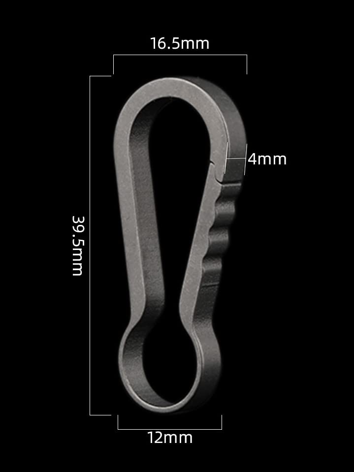 ??【バネのない一体成型仕上げの小型チタンカラビナ】強度と軽量性に優れたチタンのバネ性を活かし、つなぎ目のない一体成型で仕上げたカラビナ型キーホルダー。