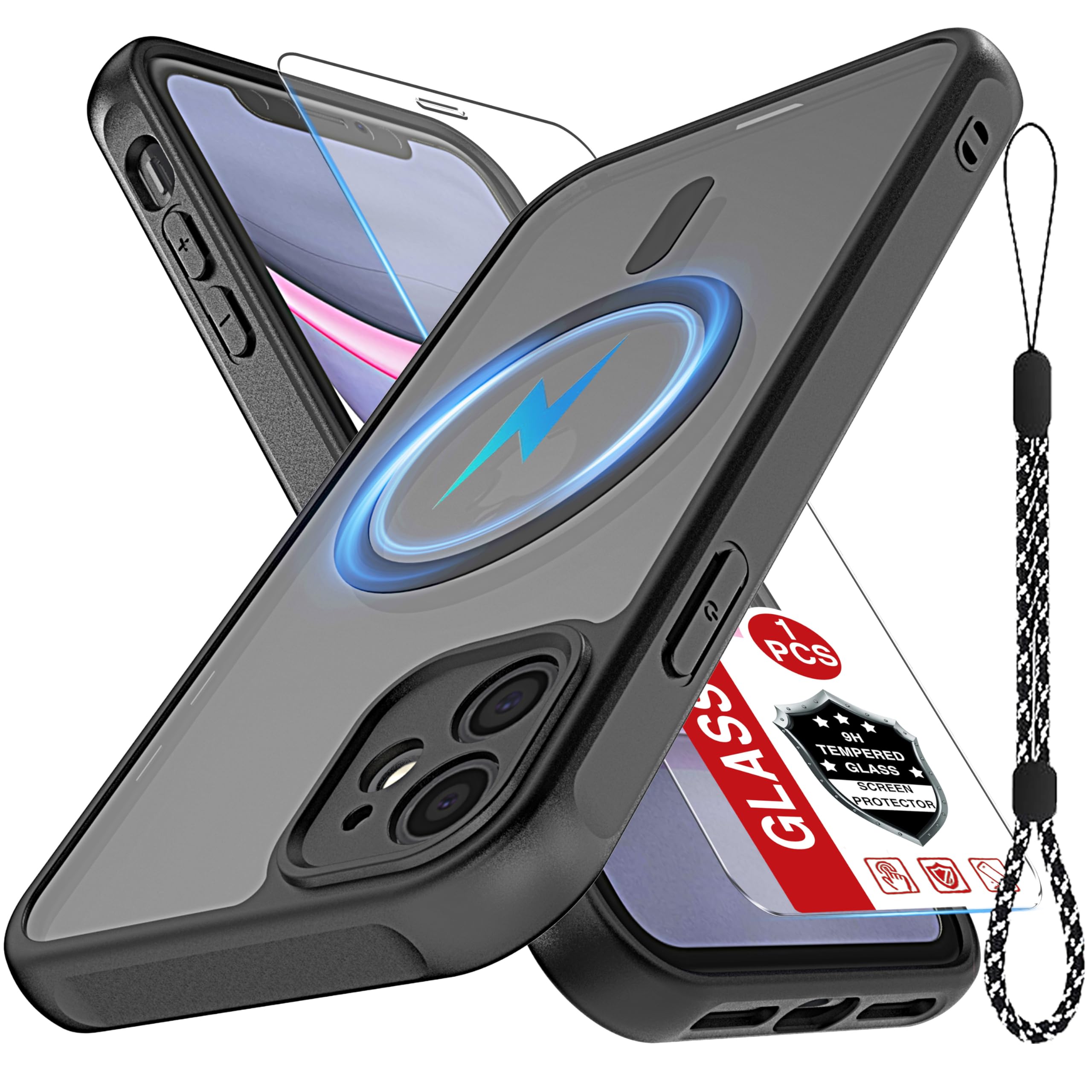 iPhone 11ケース [MagSafeと互換性] 1×強化ガラススクリーンプロテクター付き [指印防止] [高速磁性統合構造] iPhone 11 6.1インチ用-ブラック