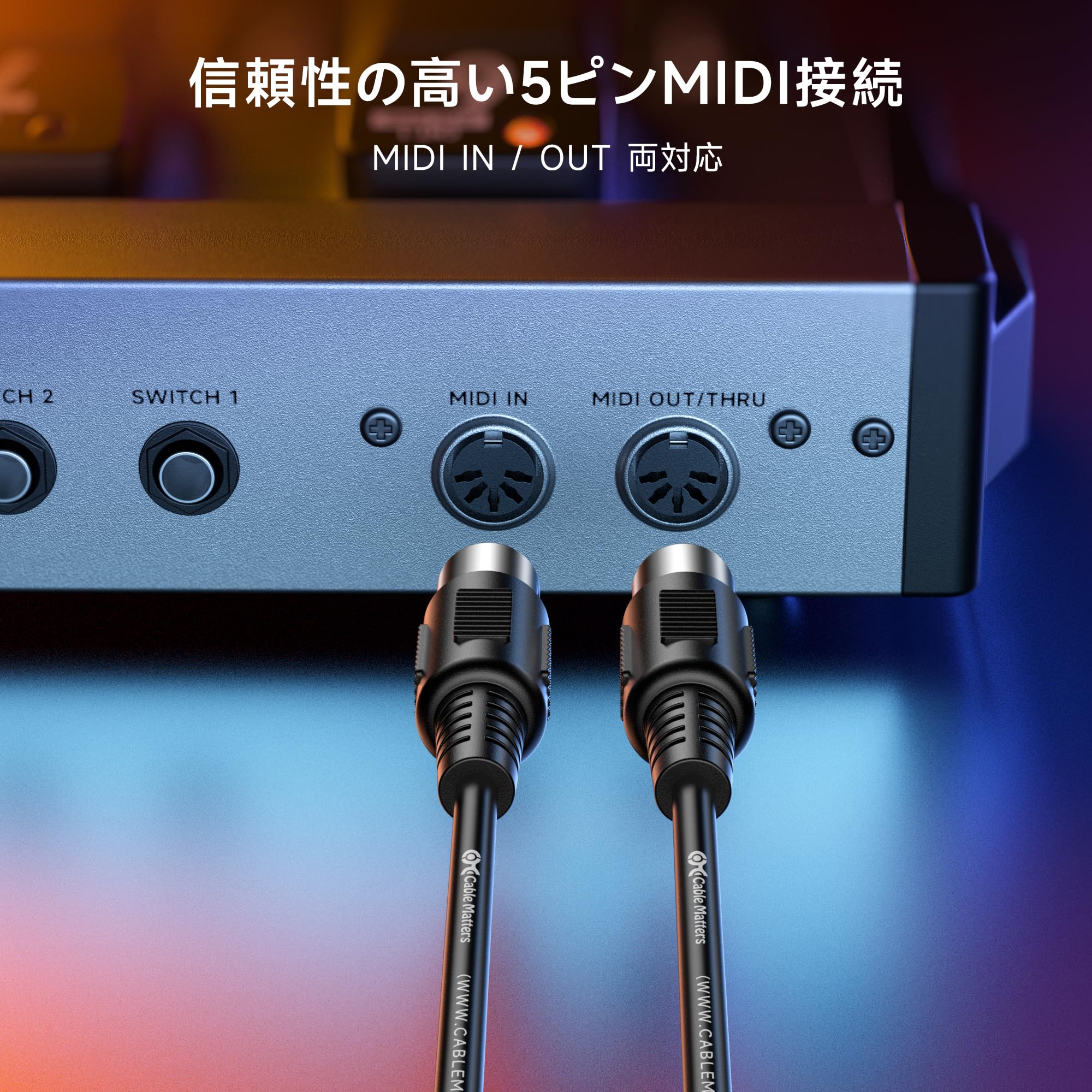 便利でお得な2本パック:MIDI IN用・MIDI OUT用として使えるMIDIケーブルが2本セット。追加ケーブルを購入する手間を省き、複数の機材を同時に接続可能。生涯付きで長期使用にも安心。