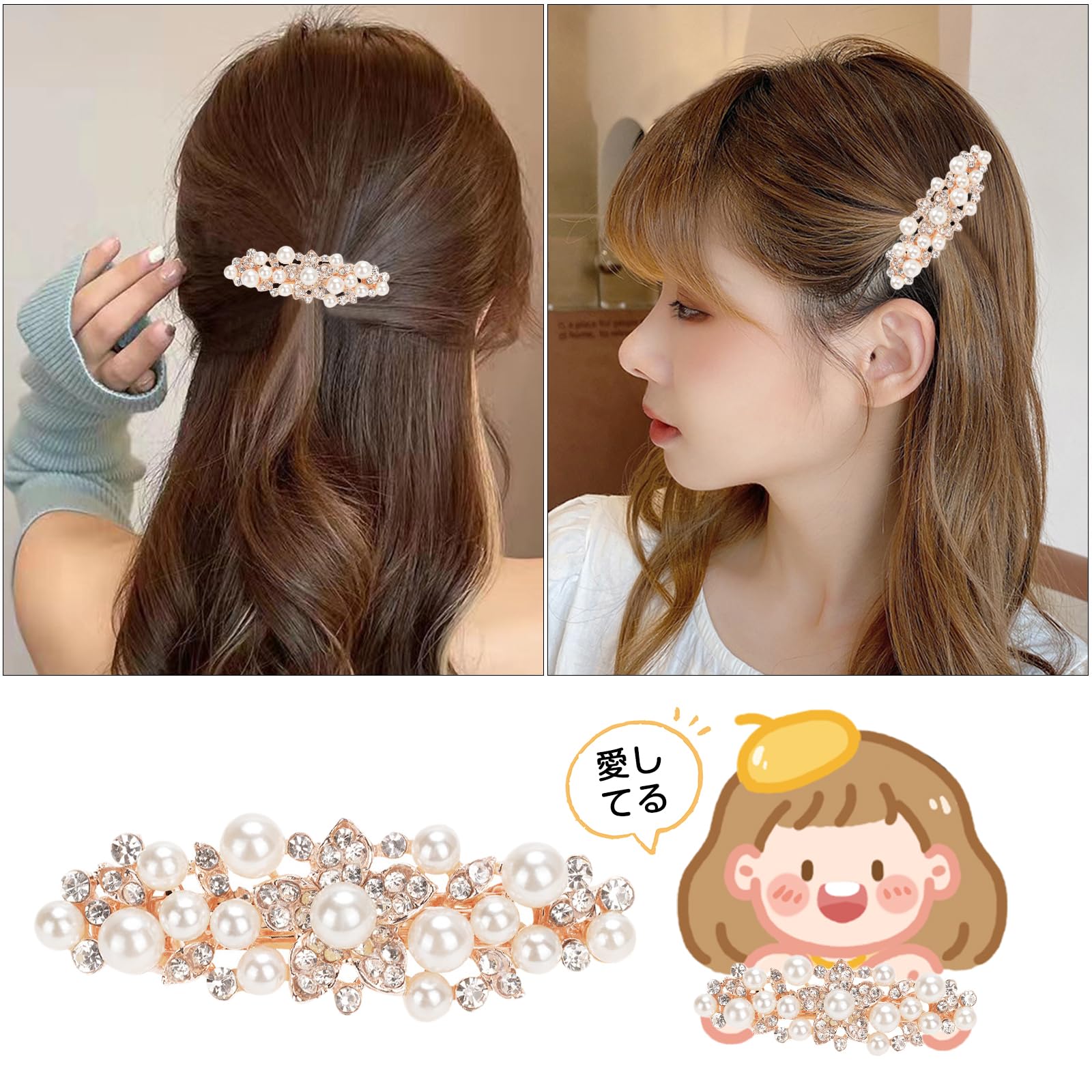 バレッタ 髪飾り 結婚式 ヘアクリップ ヘアピン パール 真珠 髪留め キラキラ ヘアアクセサリー レディース 卒業式