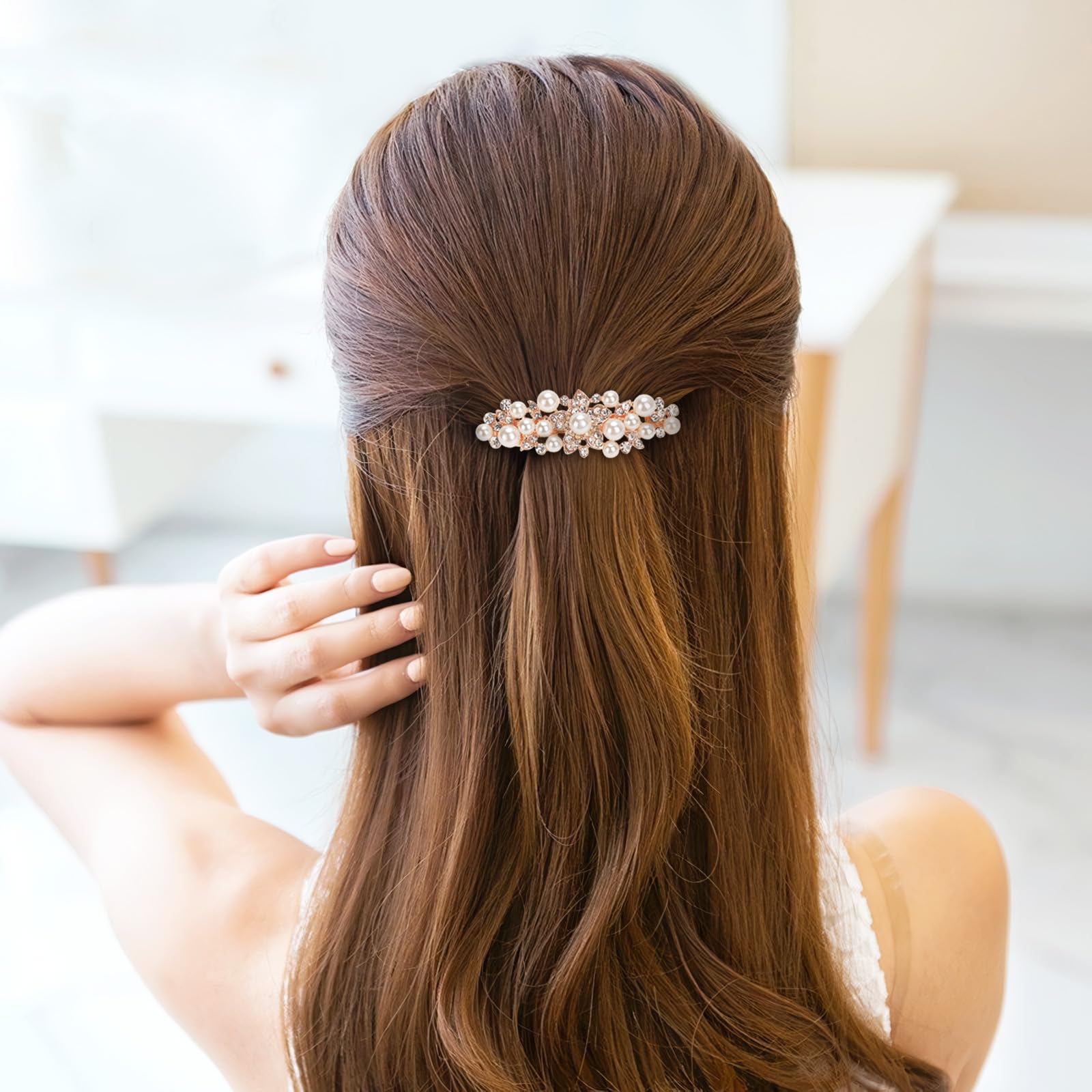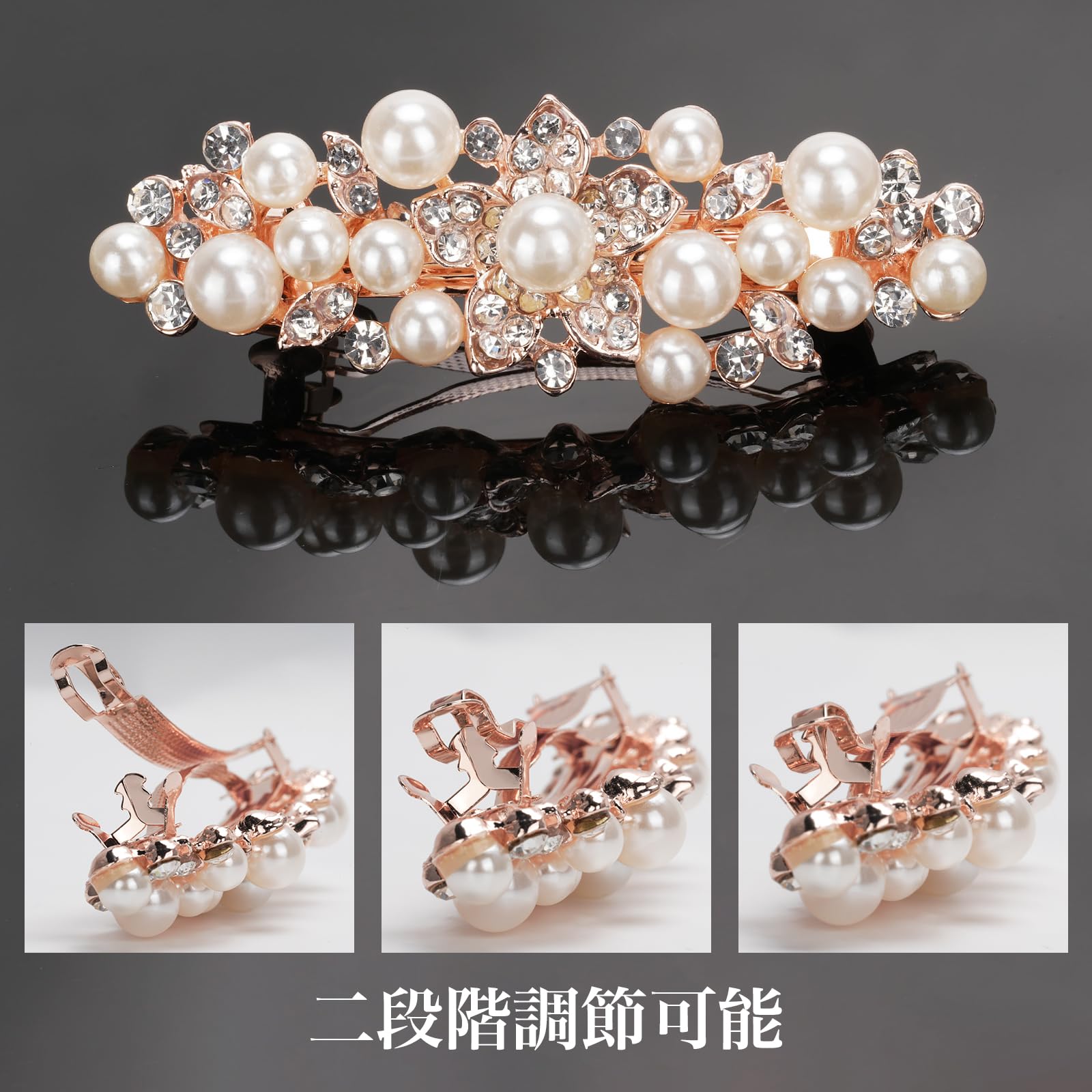 ?【2段階調節&色々な場合で大活躍】バレッタの挟む部分は2段階調節可能、髪の状況により選択します。入学式や卒業式、結婚式などにご使用いただけます