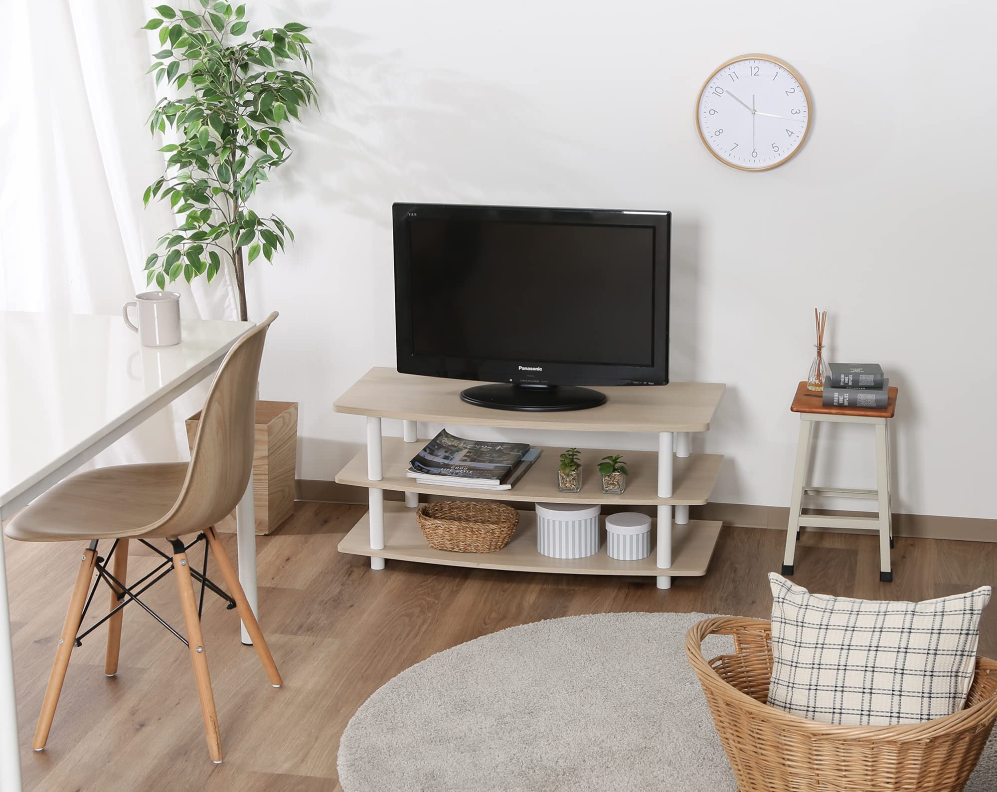 不二貿易 テレビ台 ローボード 32型 幅90×奥行40×高さ40.5cm ホワイトウォッシュ TVラック 工具不要 組立商品 97530