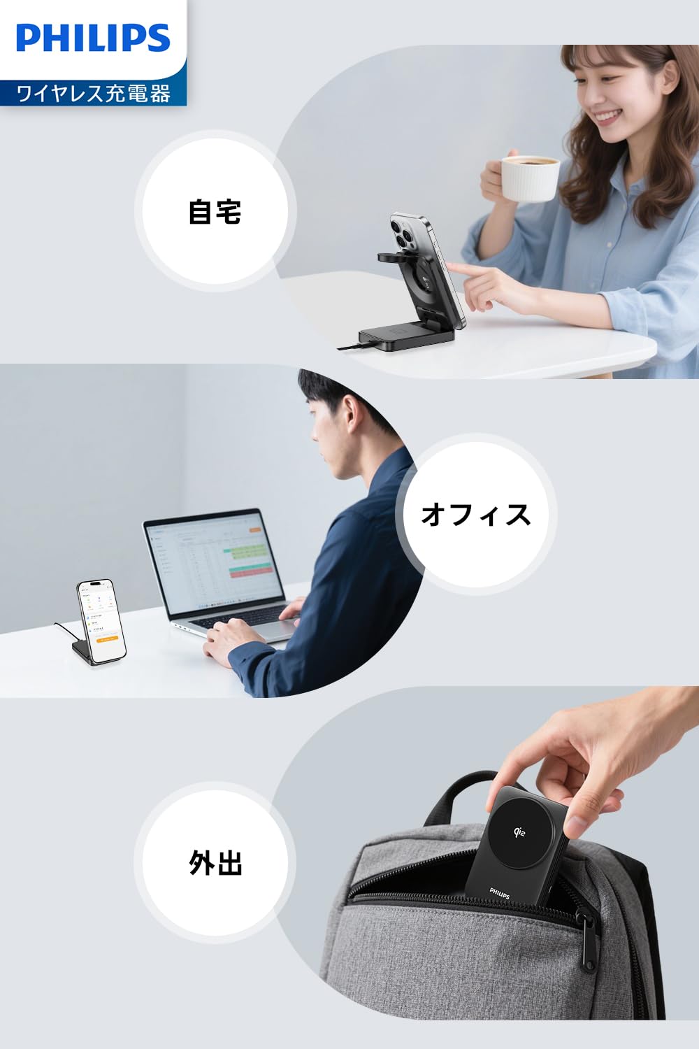 【新着特価】Philips (フィリップス) 3-in-1ワイヤレス充電器 Qi2対応 最大15W マグネット式 MagSafe充電器 スタンド型 スマホ/ウォッチ/イヤホン対応 置くだけ充電 折りたたみ式 iphone16/15/14/13シリーズ Androidスマホ airpods DLK3548Q