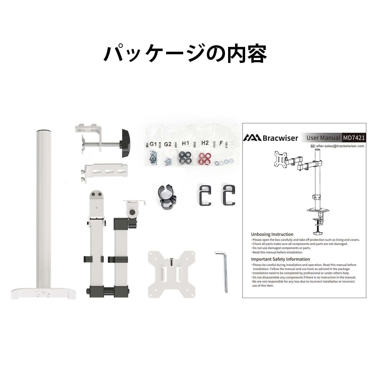 【在庫処分】Bracwiser PCモニターアーム 液晶ディスプレイアーム 白色 グロメット&クランプ式 4軸 水平多関節 13-32インチ対応 VESA規格75-100mm 耐荷重10KG MD7421W