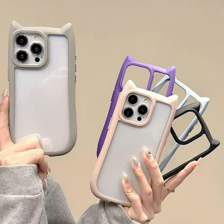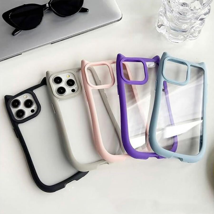 ZAZ for iPhone15Proケース ケース カバー ネコミミ カバー 猫耳ケース ネコミミケース アイフォン15pro いpほね15 pro 15プロ 背面タイプ 背面クリア 猫 フレーム シンプル かわいい おしゃれ ブラック mimi-15pro-002