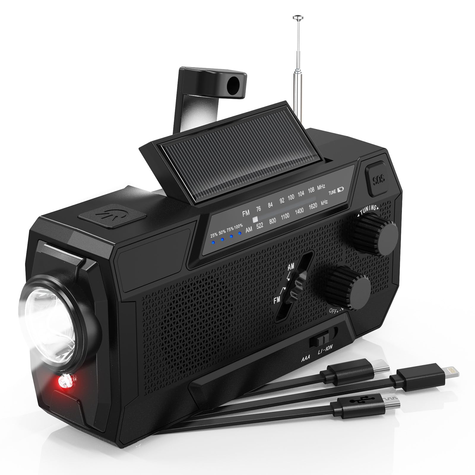 Shinmax 防災ラジオ 4000mAh電池内蔵 AM/FM対応 手回し災害ラジオ 多機能 SOSアラート付き 3ケーブル内蔵 懐中電灯 読書灯 アウトドア キャンプ 防災グッズ 非常用 防災用 USB充電式 ソーラー充電 手回し充電 スマホ充電可能 台風/地震/津波/停電などの緊急対策 日本語取扱説明書 (4000mAhブラック)