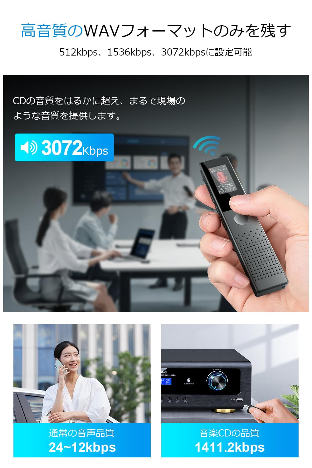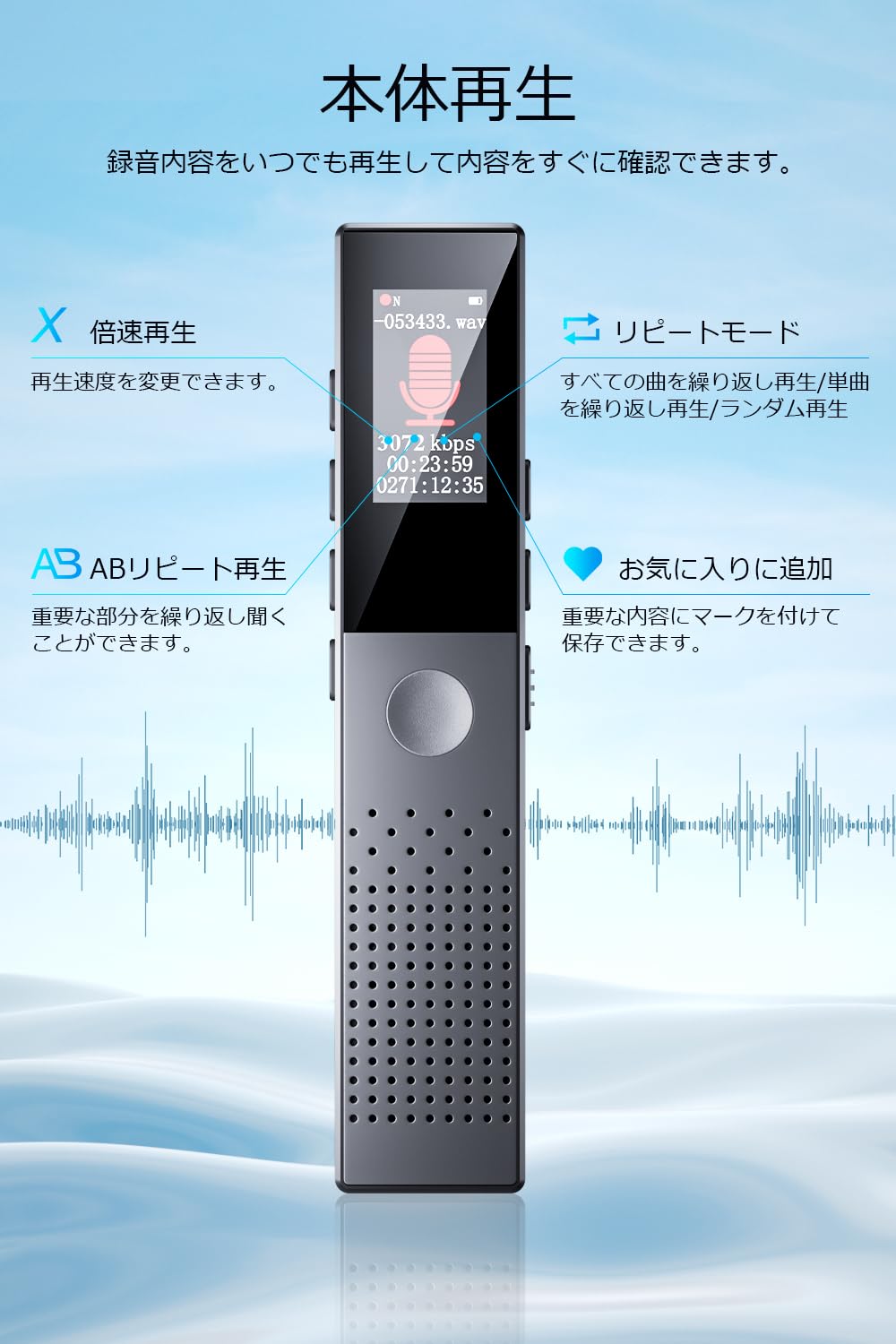 ボイスレコーダー 小型 ICレコーダー 【2025新登場&64GB大容量&3072kbps音質】 録音機 コンパクト 長時間録音 ENCデュアルマイク ノイズキャンセリング ワンボタン/VOR/タイマー録音 高性能 変速再生 ABリピート パスワード保護 音楽 MP3プレーヤー Bluetooth 会話録音/会議/インタビュー/授業録音適用 イヤホン付き
