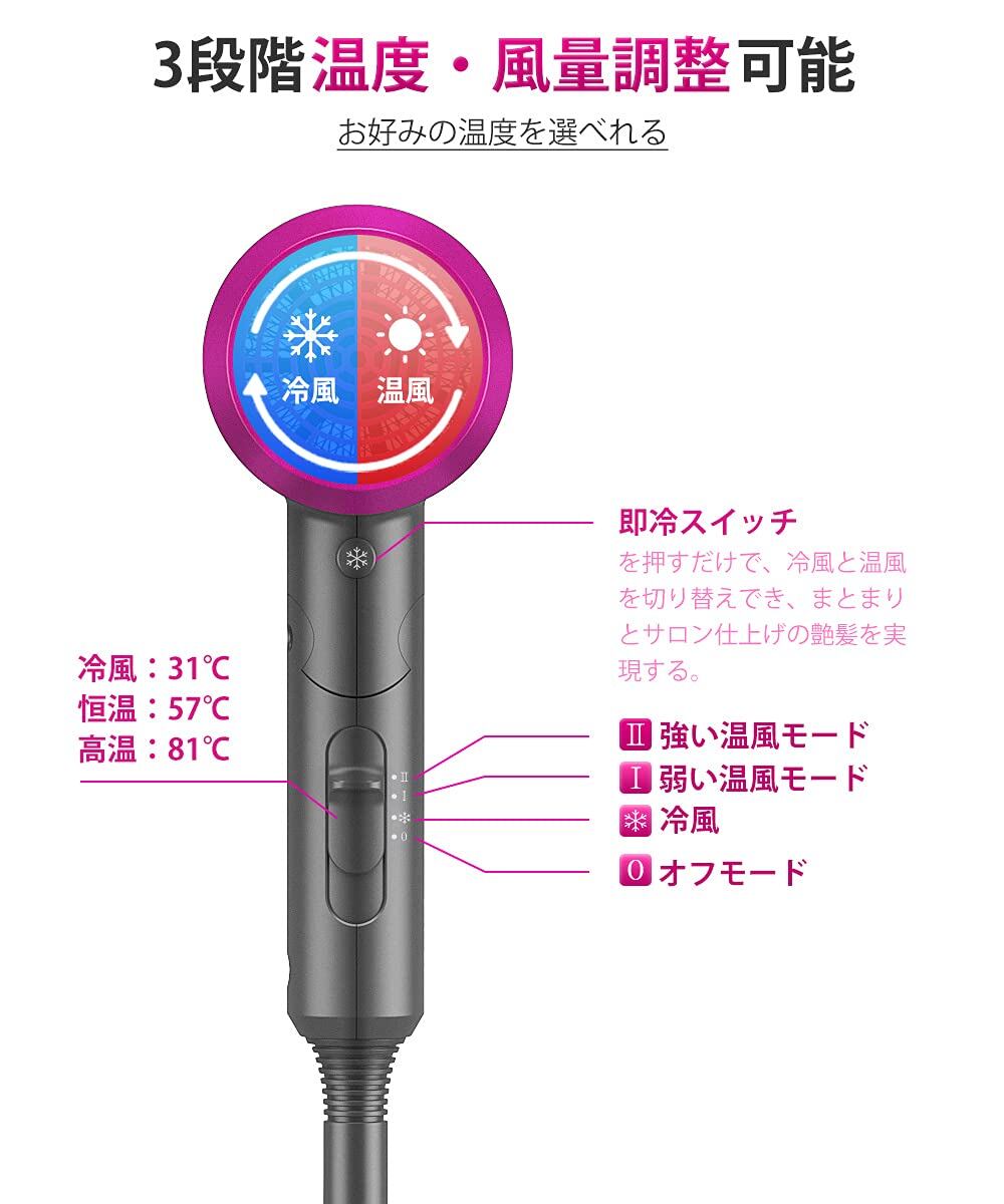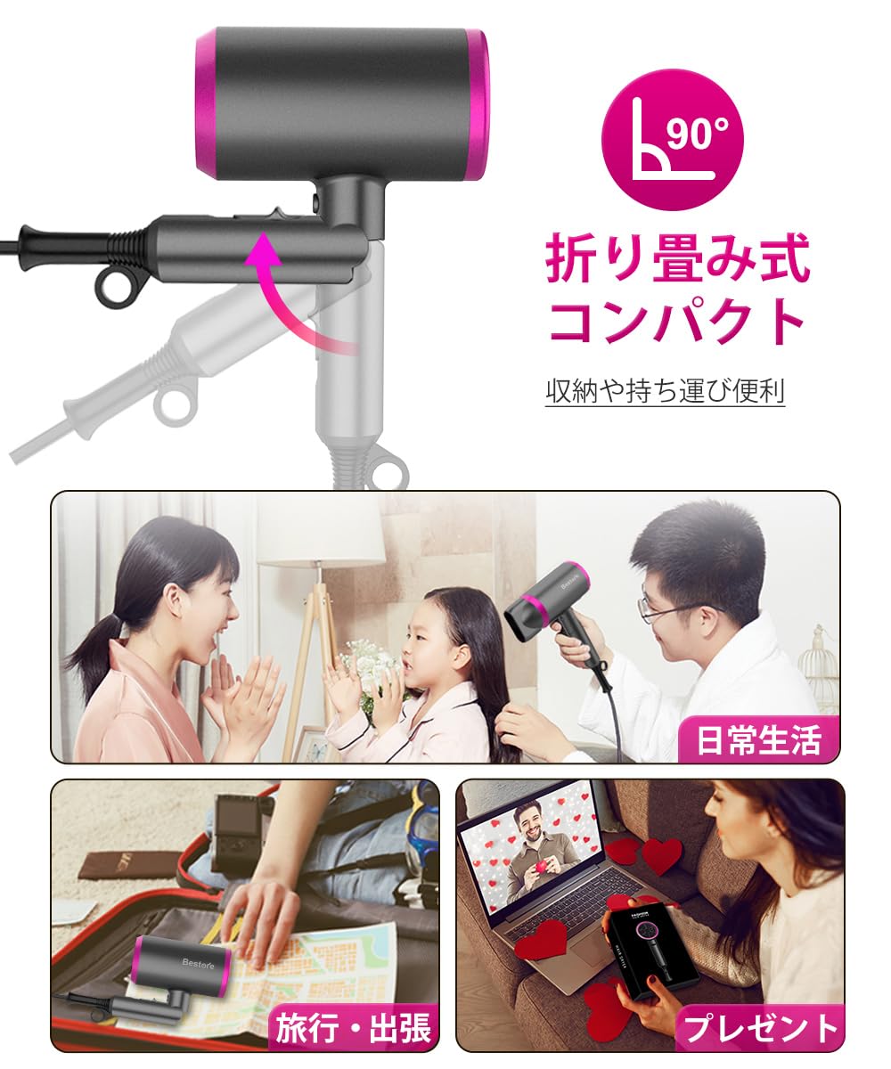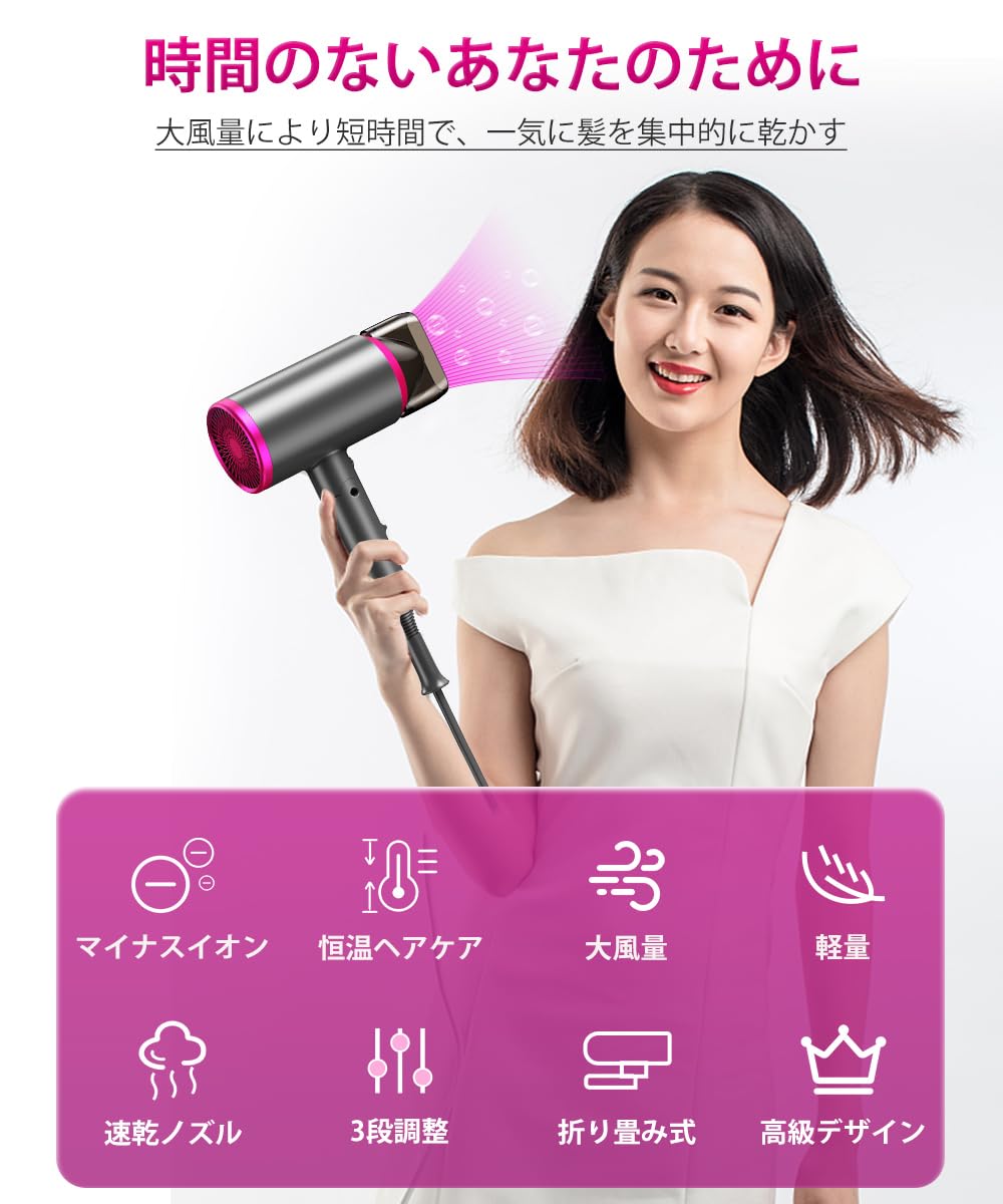 ヘアドライヤー 大風量 速乾 マイナスイオン 折り畳み式 軽量 57℃恒温 過熱防止 ノズル付き ドライヤー 3段階調節 携帯便利 オシャレ 家庭用/旅行用/ヘアサロン プレゼント