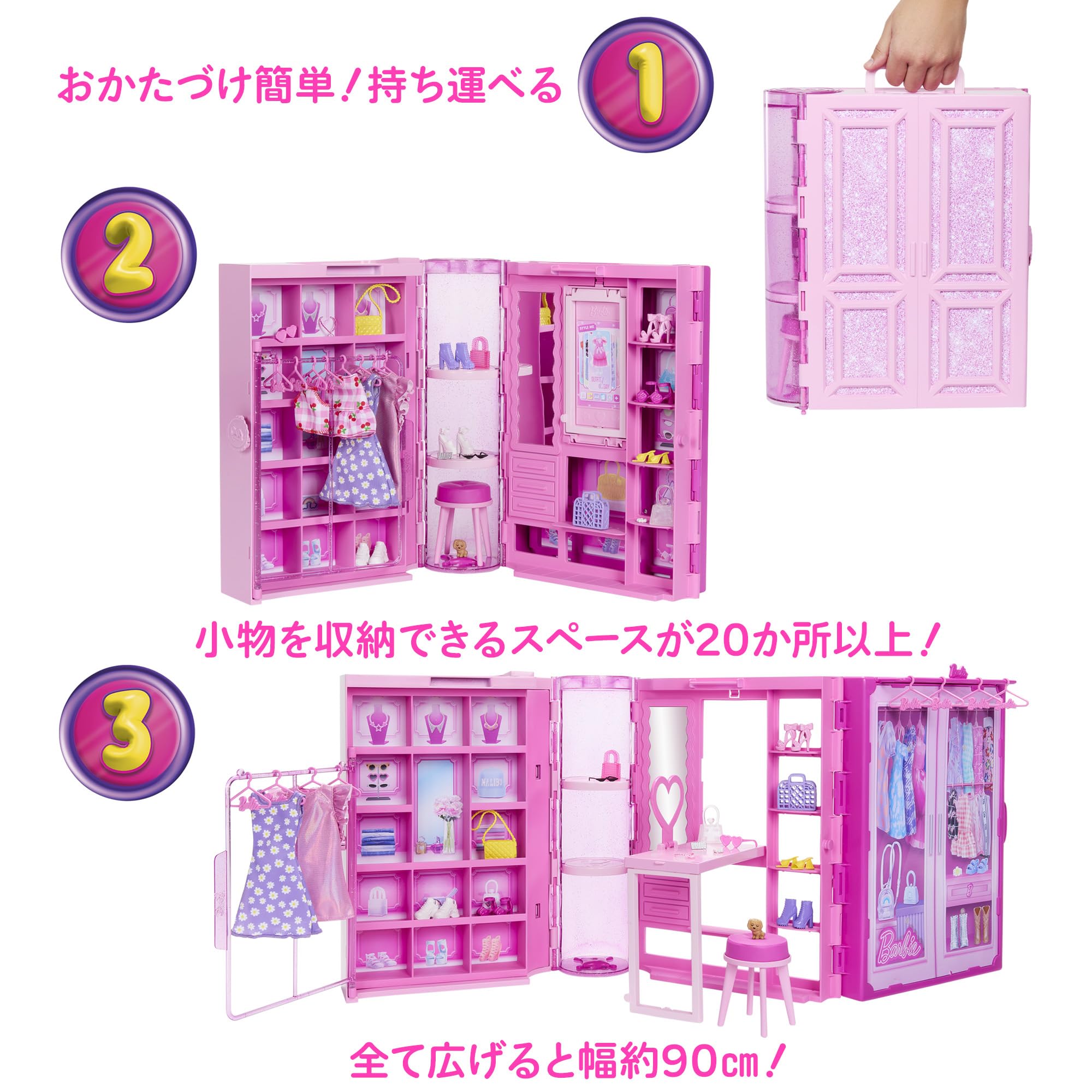 【内容】バービーのドリームクローゼットが登場!広げると約90cm大きく収納スペースも抜群!