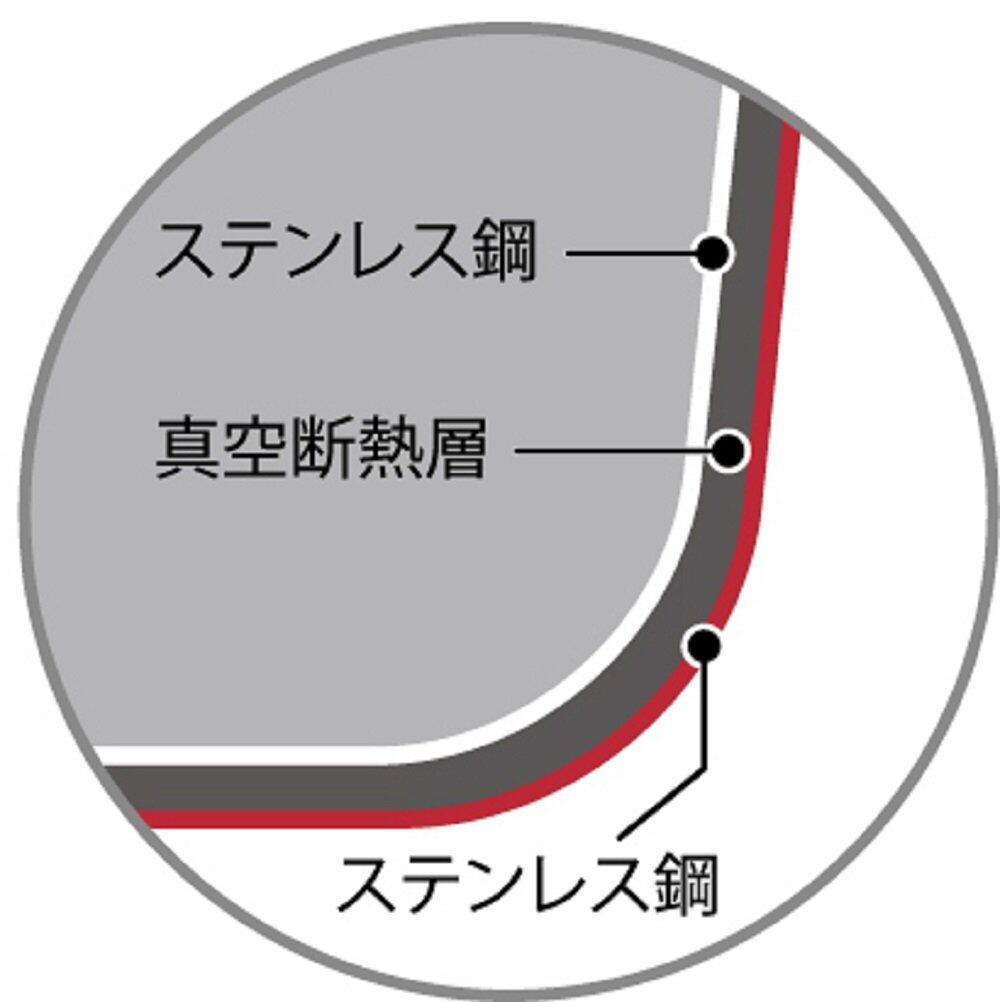 ステンレス真空断熱構造で熱伝導をおさえ、おいしい温度をキープ