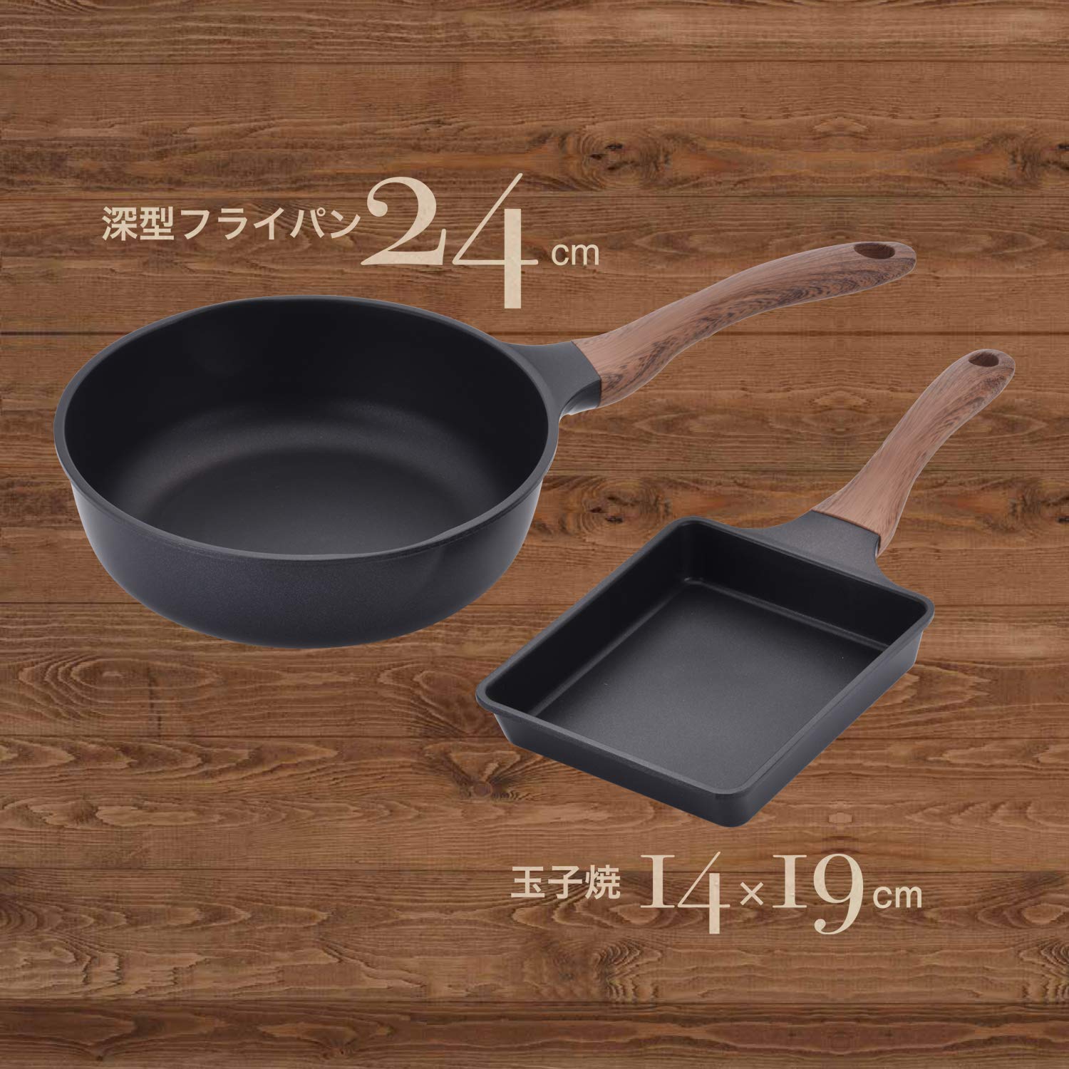 和平フレイズ フライパンセット 玉子焼き&深型フライパン24cm IH対応 ブラック 木目調ハンドル エヌトーン MB-1225