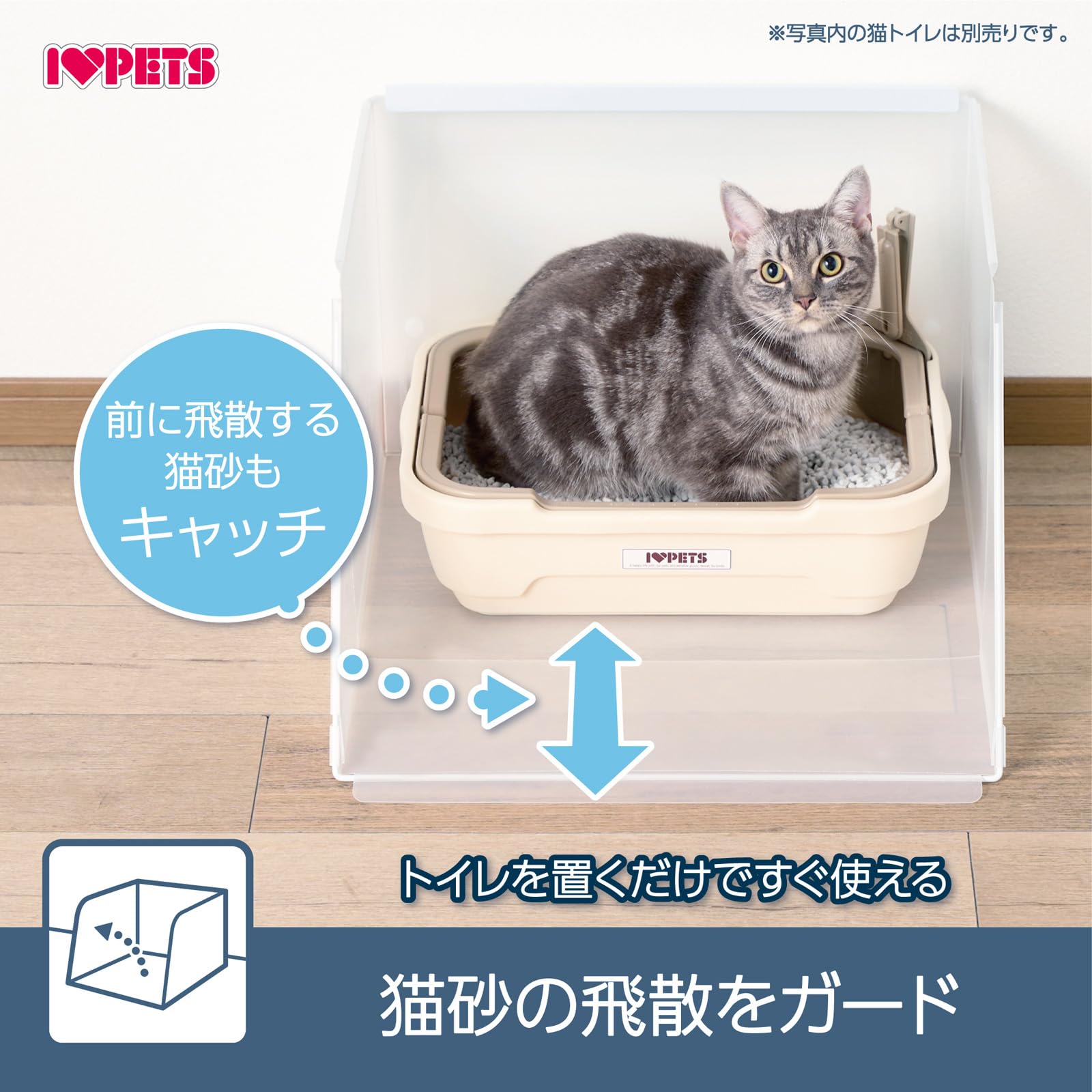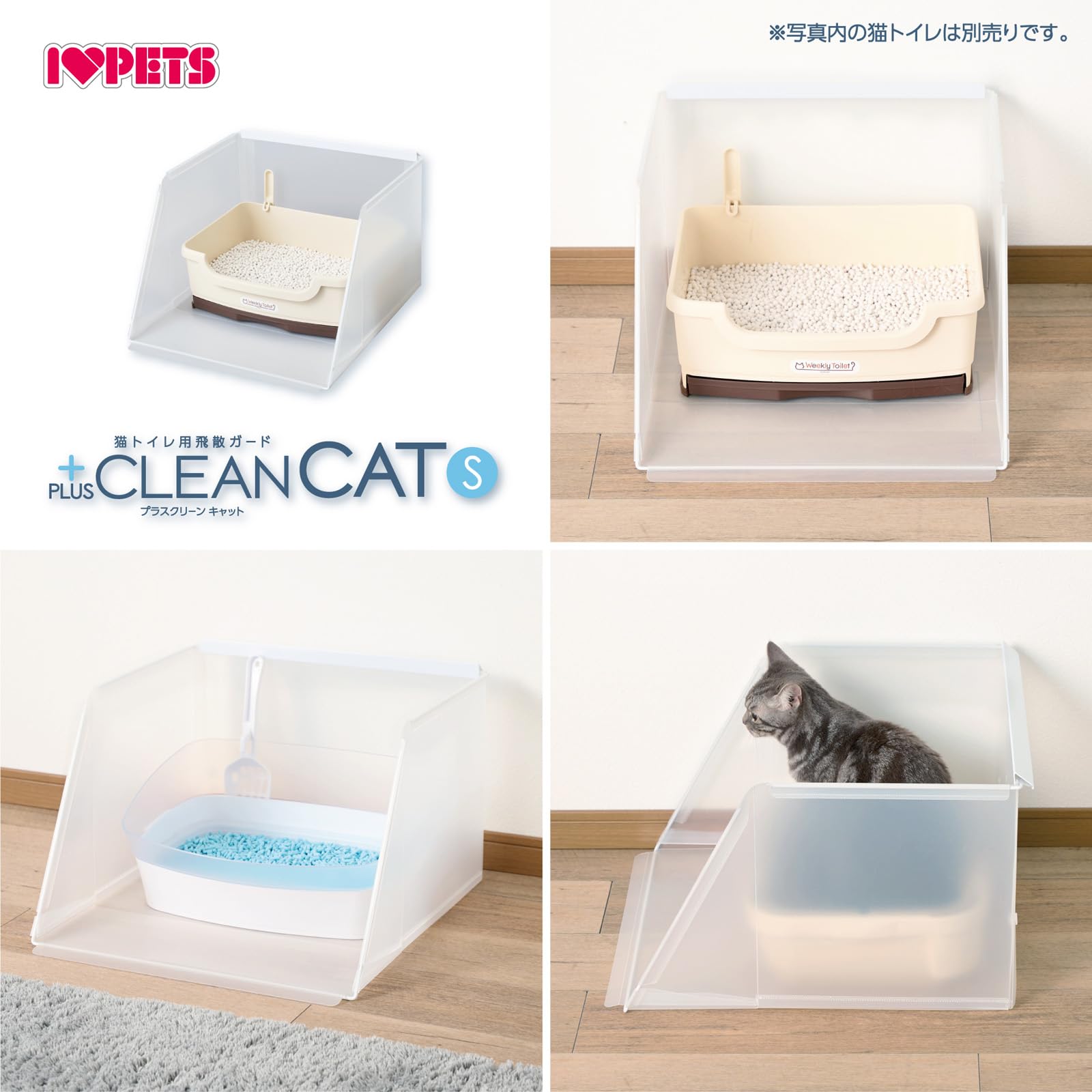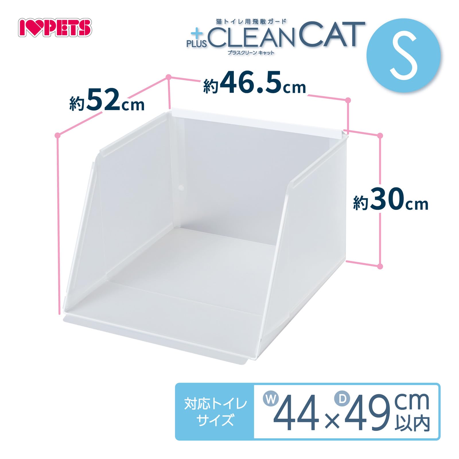 プラスクリーンキャット Sサイズ 壁面から床面への猫砂や汚れの飛散を防ぐトイレ用スクリーン ・猫砂の飛散をガード!トイレを置くだけですぐ使えます。前に飛散する猫砂もキャッチします。 ・高い壁で目隠し効果があります。トイレ時の視線を気にする猫ちゃんも安心です。 ・お手入れしやすい形状で水洗いもOK! ・サークルの中にも設置可能。 使用方法 【対応トイレサイズ】 W44×D49cm以内
