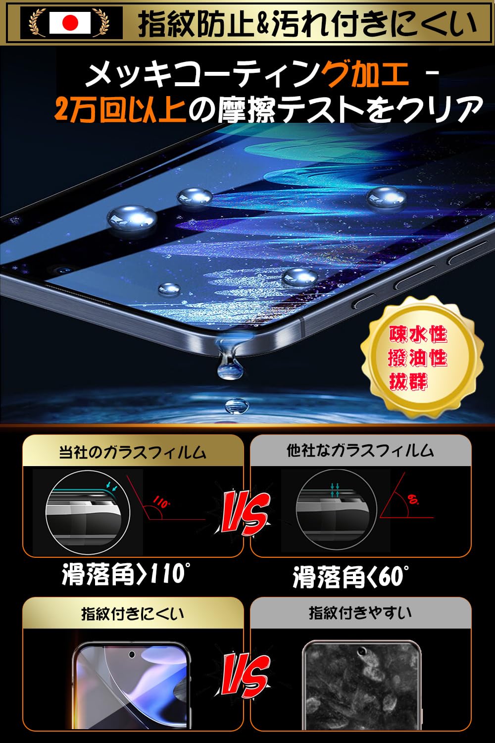 【疎水性、撥油性拔群】極薄ガラスフィルムに高耐久撥油コーティングが施され、汚れや油分をはじき、指紋がつきにくく、付着した汚れなどは簡単に拭き取れます。【極上の一体感】高精度加工の3Dラウンドエッジをしており、スマホの湾曲した部分にピッタリとフィットし、一体感のあるデザインとなっています。また、スマホケースと干渉しないように専用設計 フィルムており、縁まで スクリーンを守っていきます。 また、数多くのデザインのケースの装着実験して、99%以上のケースとの相性が良いです。安心してご利用いただくために、万が一品質に問題が発生した場合、にご連絡いただければ迅速に対応いたします。