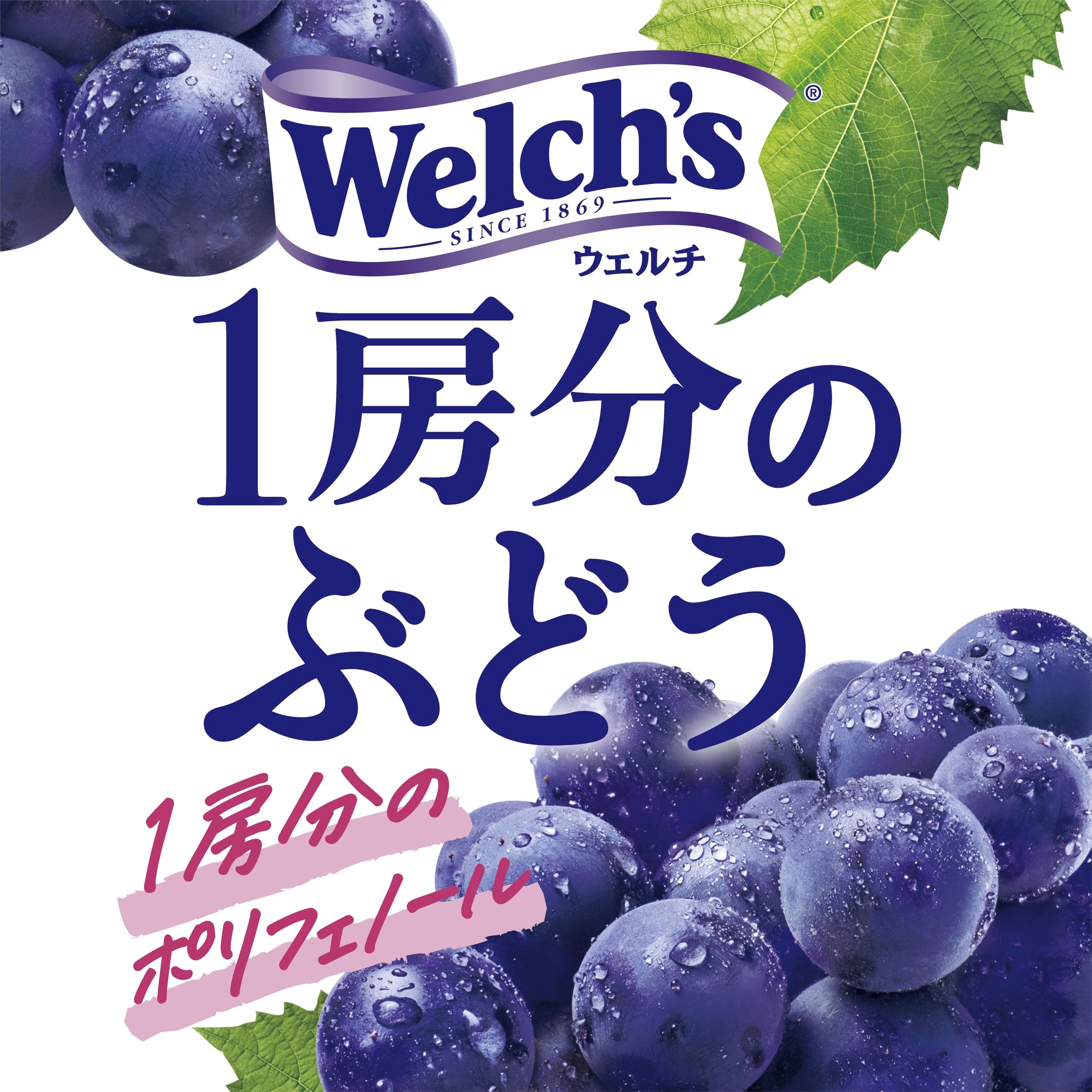 【こだわりのぶどう1房分もの濃いおいしさで手軽に気分を前向きにできる果汁飲料】 ウェルチならではの果実本来のおいしさが、ぎゅっと1房分詰まったぶどう果汁飲料です。 忙しい日々の合間に、疲れた気分を軽くしたり、気分を変えてもうひと頑張りしたい時にお楽しみください。 カラダにうれしいポリフェノールも摂れます。