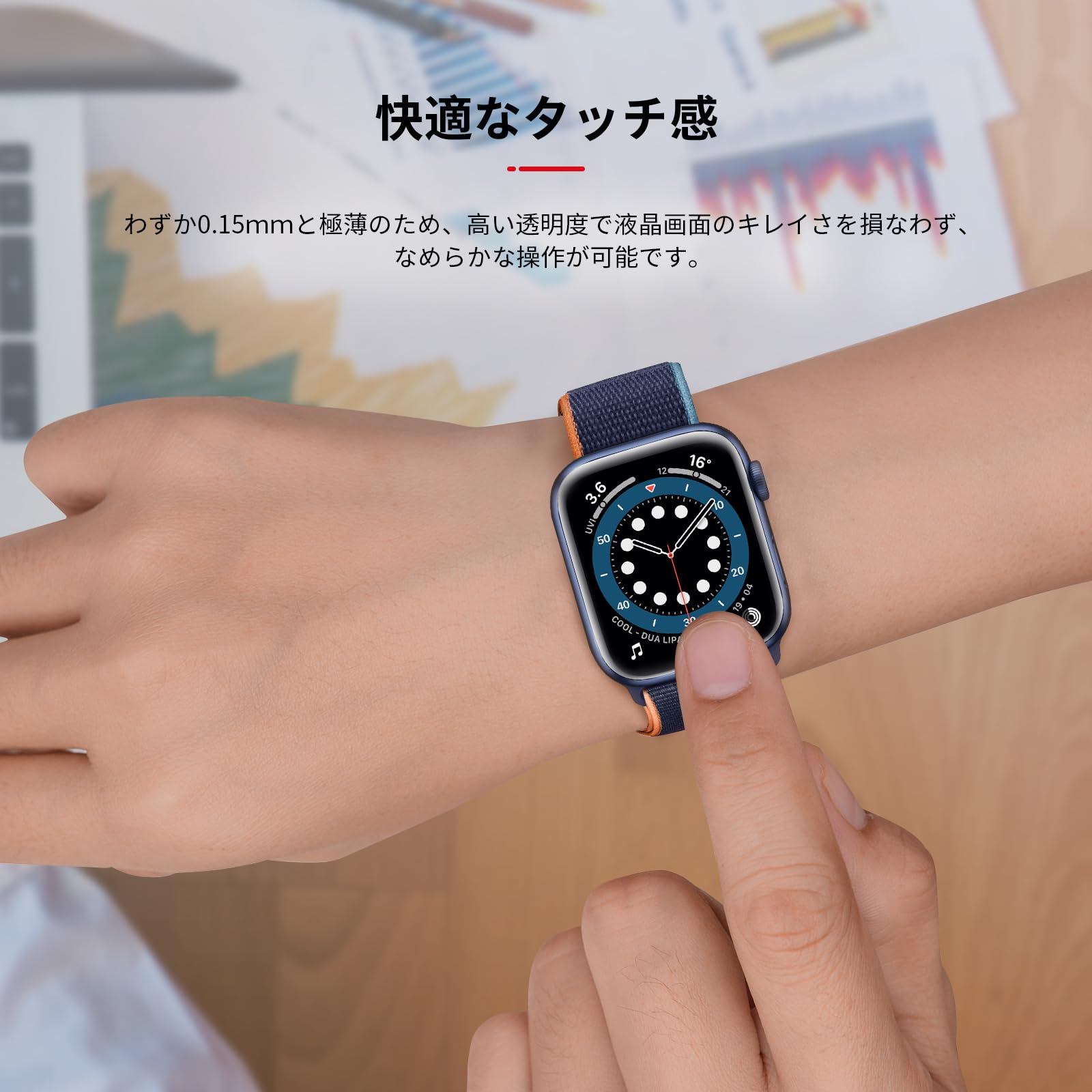 ★高透過率&高感度タッチ:高透過率を持つ極薄TPU素材製、フィルムの装着感はゼロで、高い透明感Apple Watch画面の精細さを保ちます。高い品質なTPUで優れたタッチ感を実現します。