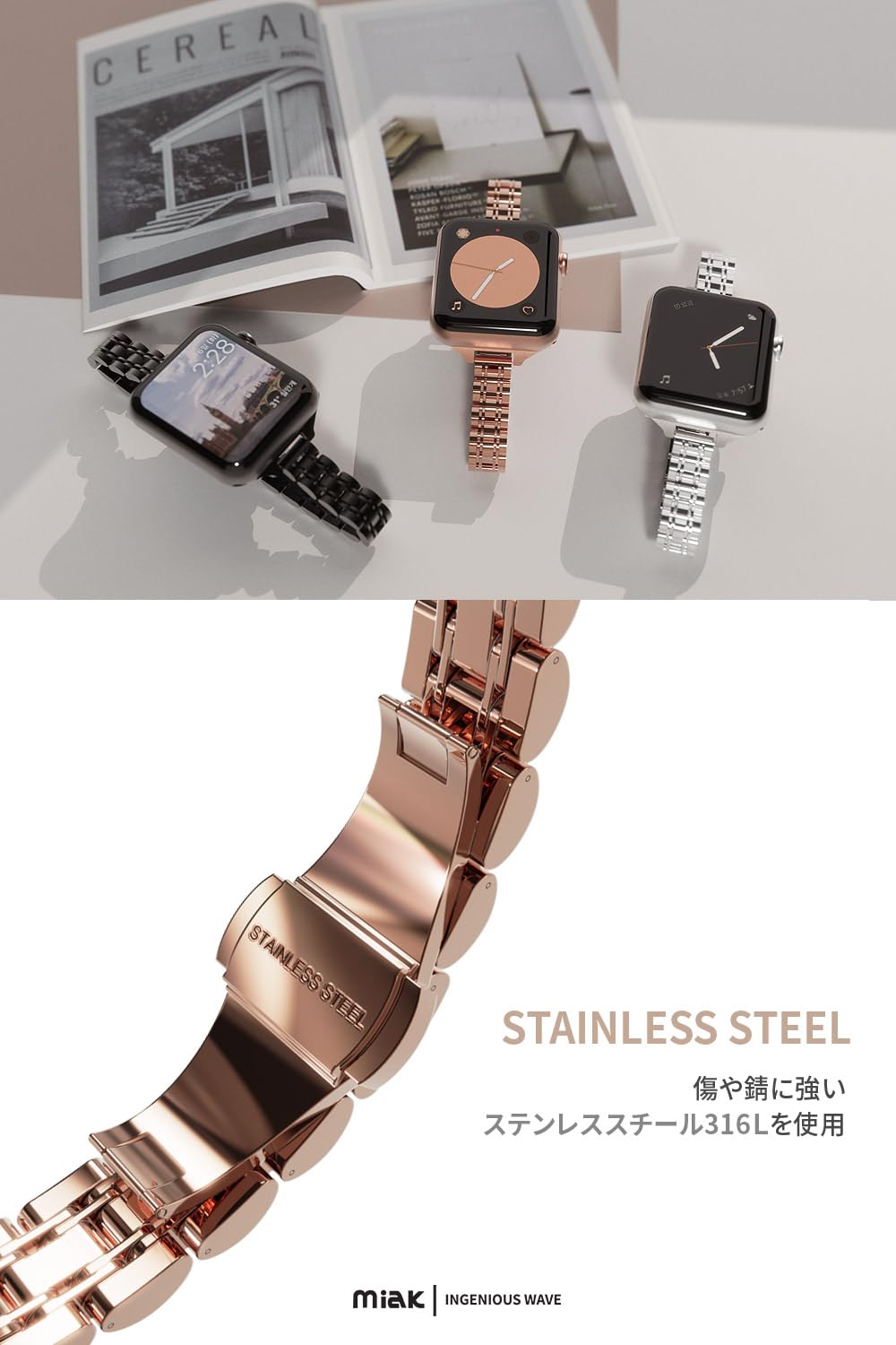 Apple Watch バンド miak JUBILEE METAL BAND for Apple Watch 45/41mm, 44/40mm, 42/38mm 用 (Series 1-7 / SE)