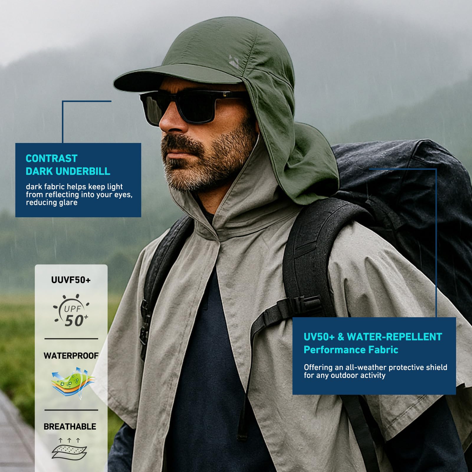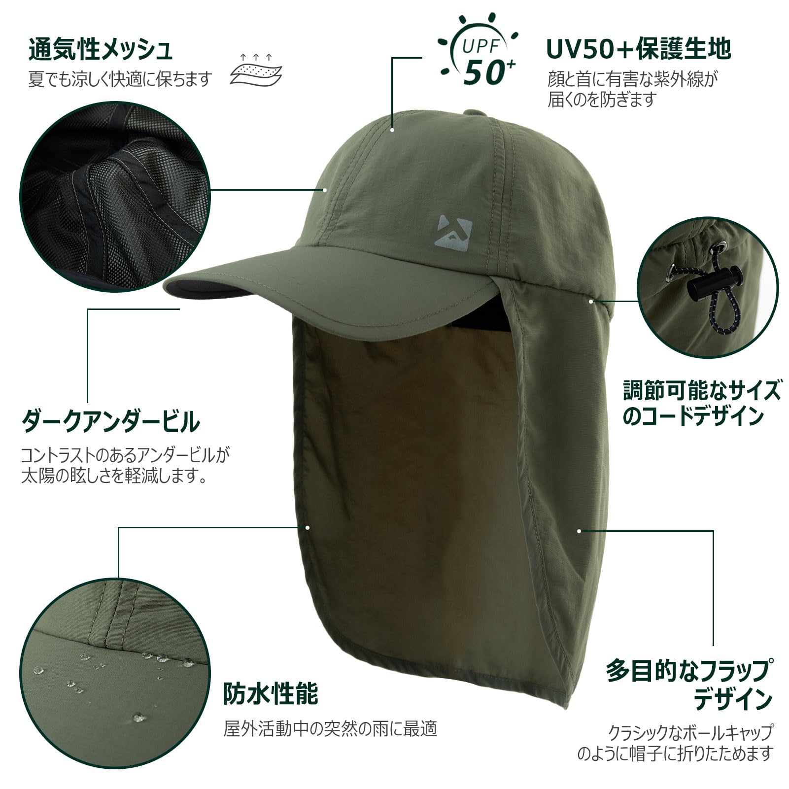 【防水でUV50+のオールウェザープロテクション】UPF 50+の防水キャップで要素に立ち向かいます。雨や太陽からの保護を提供し、カヤックやボートなどのアウトドア活動には欠かせません。また、涼しさと光を提供する日よけバリアを提供します。