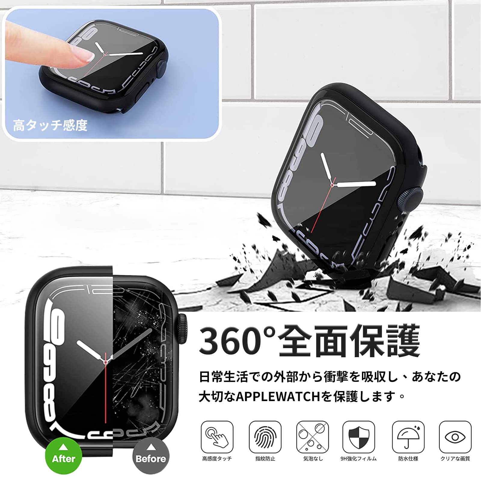【高品質素材】Apple Watch ケースの画面部分が硬度9Hで強靭な日本旭硝子素材を採用して耐傷、耐衝撃のは強い。スマートウォッチ本来の美しさをそのままに保つことが可能です。