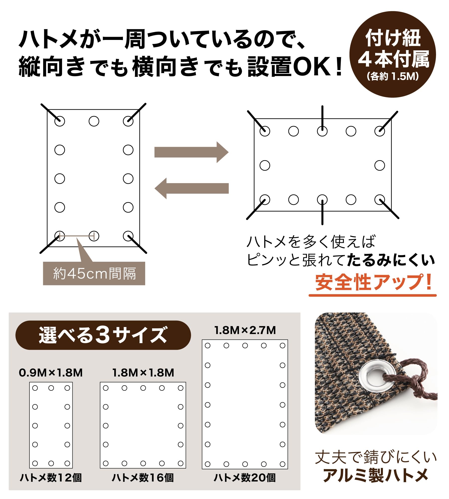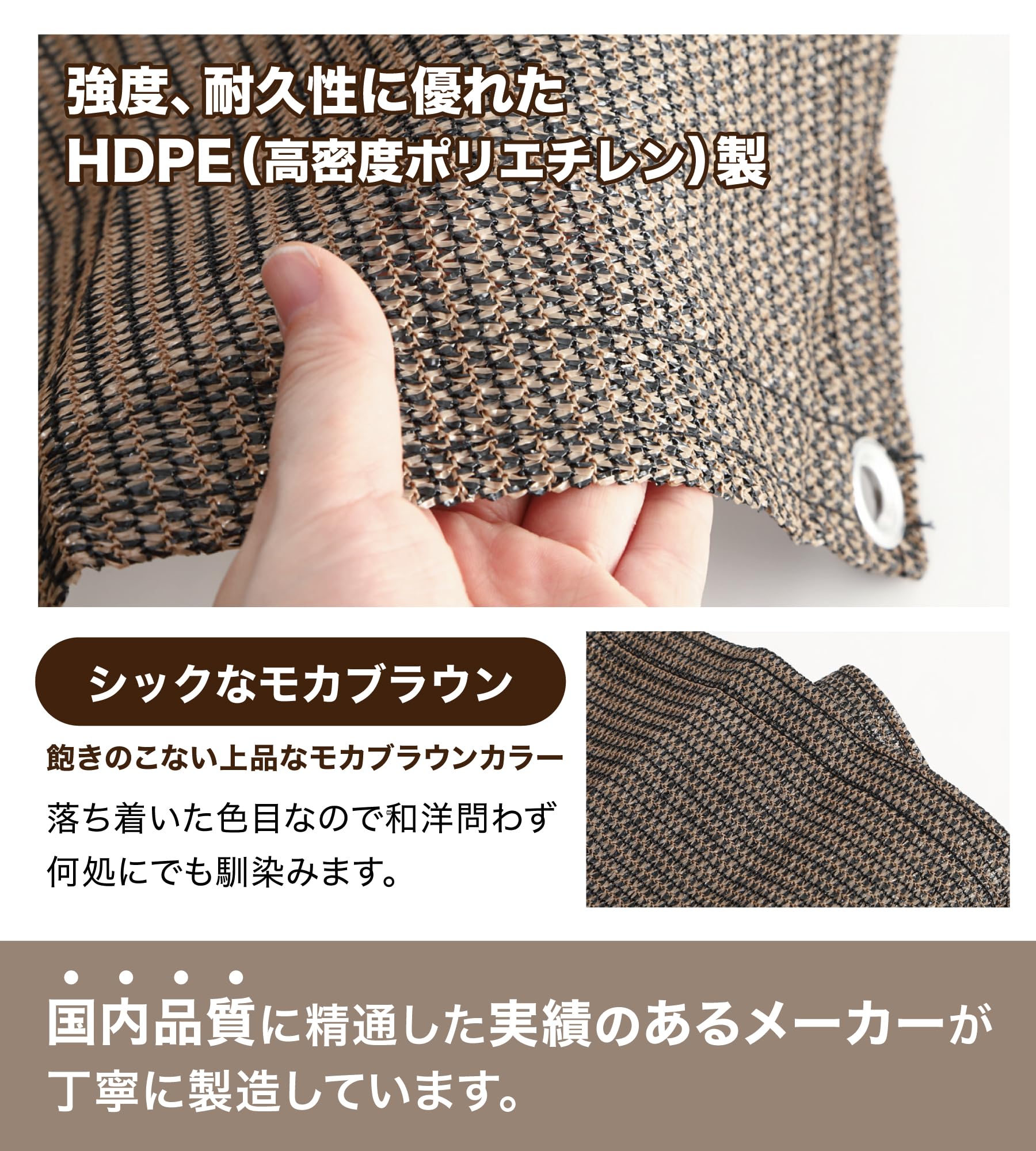 Daddy's Weekend サンシェード モカブラウン 通気タイプ ベランダ 庭 UVカット 日よけシェード 付け紐4本付属 紫外線カット 【日本ブランド】 (0.9M×1.8M)