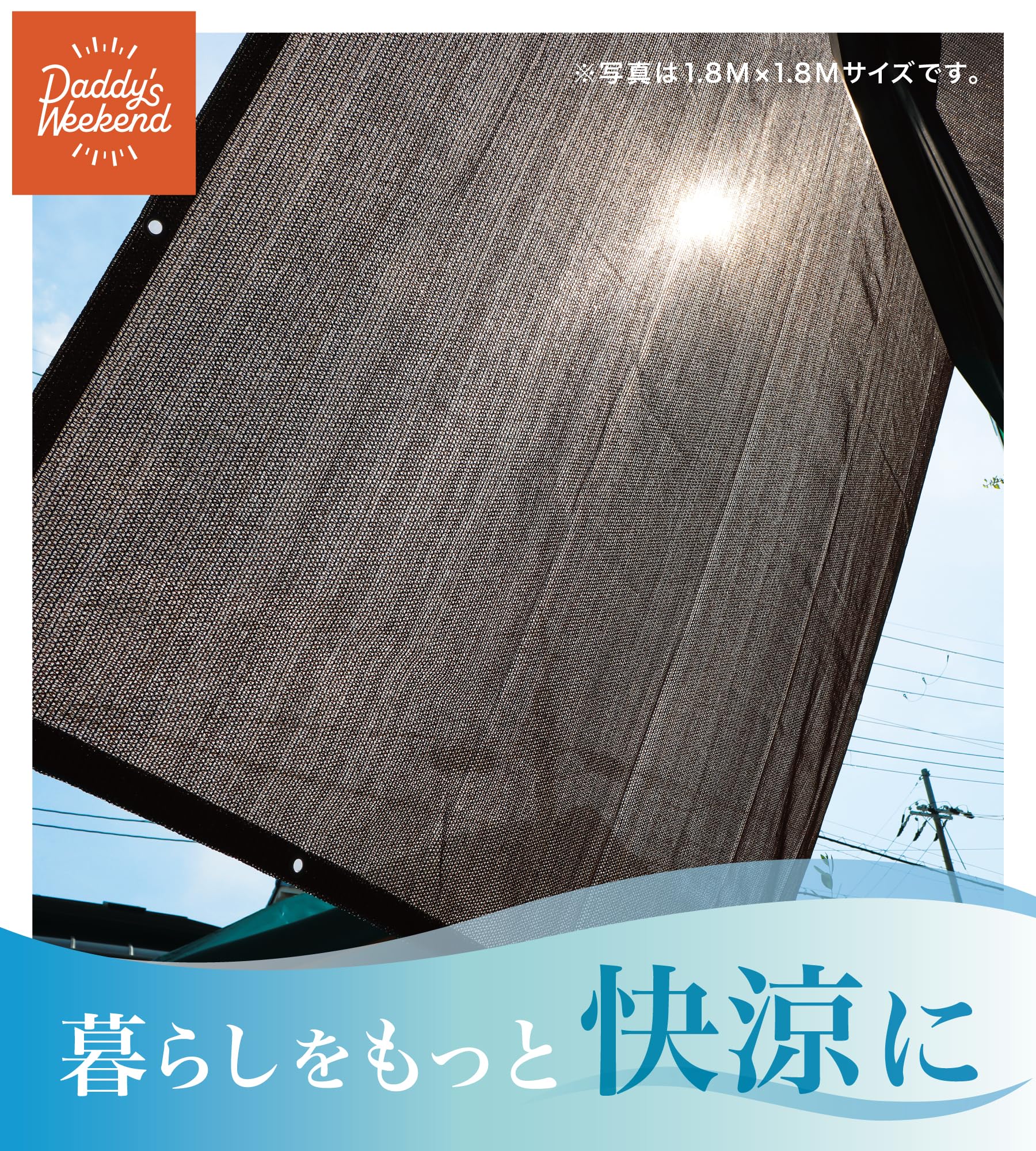 【数量限り】Daddy's Weekend サンシェード モカブラウン 通気タイプ ベランダ 庭 UVカット 日よけシェード 付け紐4本付属 紫外線カット 【日本ブランド】 (0.9M×1.8M)