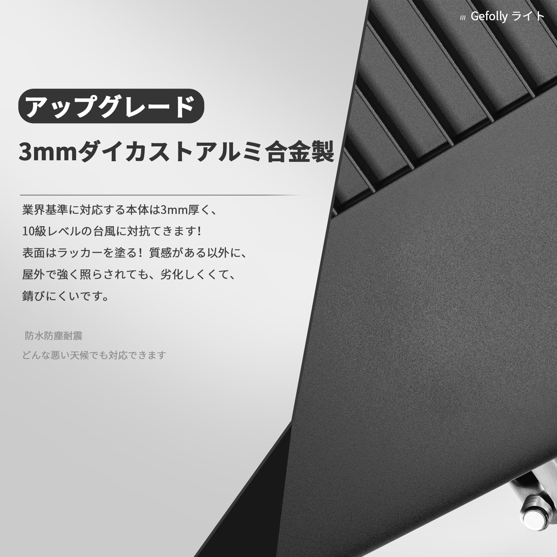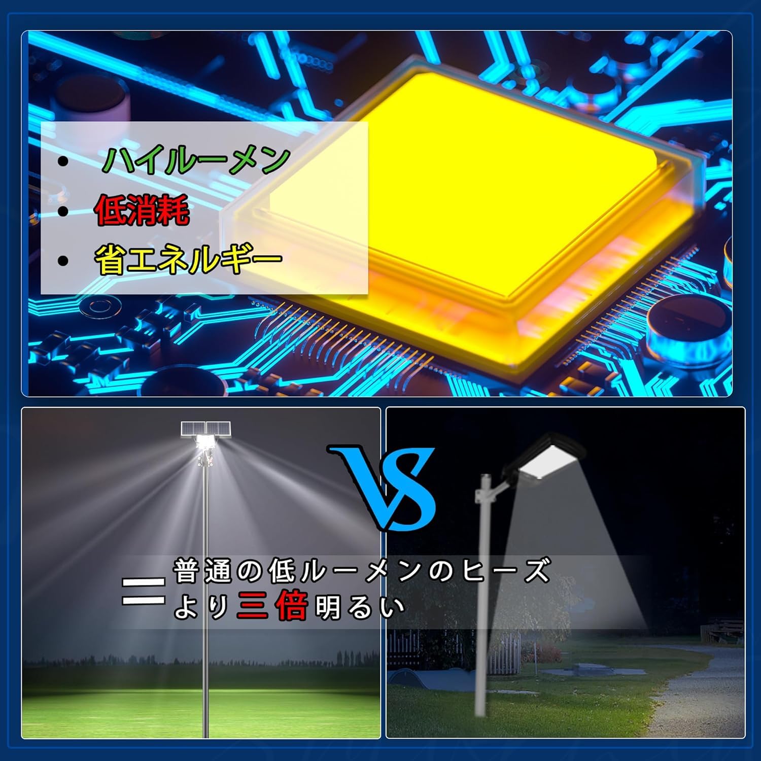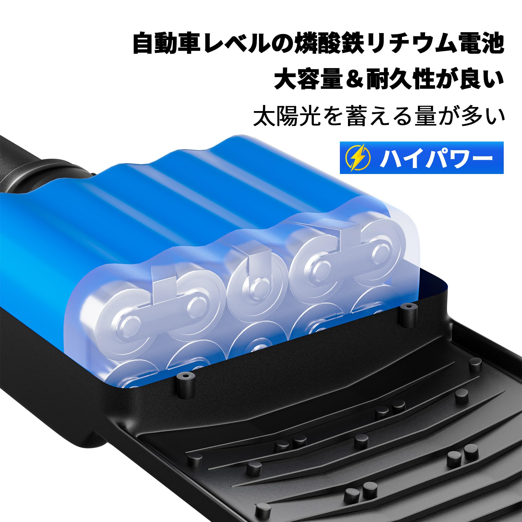 ??【2025年新登場&アップグレードの素材】本製品は今年販売し始めたアップグレード版ソーラー街灯です。外部は重耐塩塗装の航空機用のダイカストアルミニウム合金を採用し、固くて高品質で、衝撃に耐え、劣化しくい素材です。LEDビーズはレンズ版ledビーズを採用し、より強力で明るい光を発することは可能です。2枚のソーラーパネルを採用し、もっと多くの太陽光を吸収し、より多くの電量をバッテリーに蓄える。より長い照明時間を維持可能です!!!本製品だけ持つ機能→電量表示:表示ライトの変化を通して、一目で電量の残りや充電状態や満電状態が確認ことが実現可能です!!!