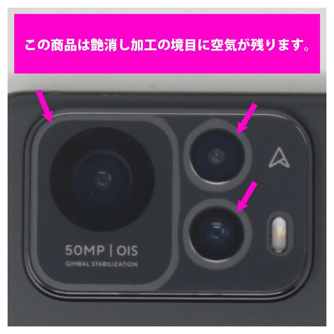 ※機器表面の仕上げの都合により、艶消し加工の境目に空気が残ります。 ※この機器はカメラレンズ部のコーティングが良いため、フィルムに力を加えると貼り付けた位置から動く場合がございます。簡単に戻せますので、戻してお使いください。