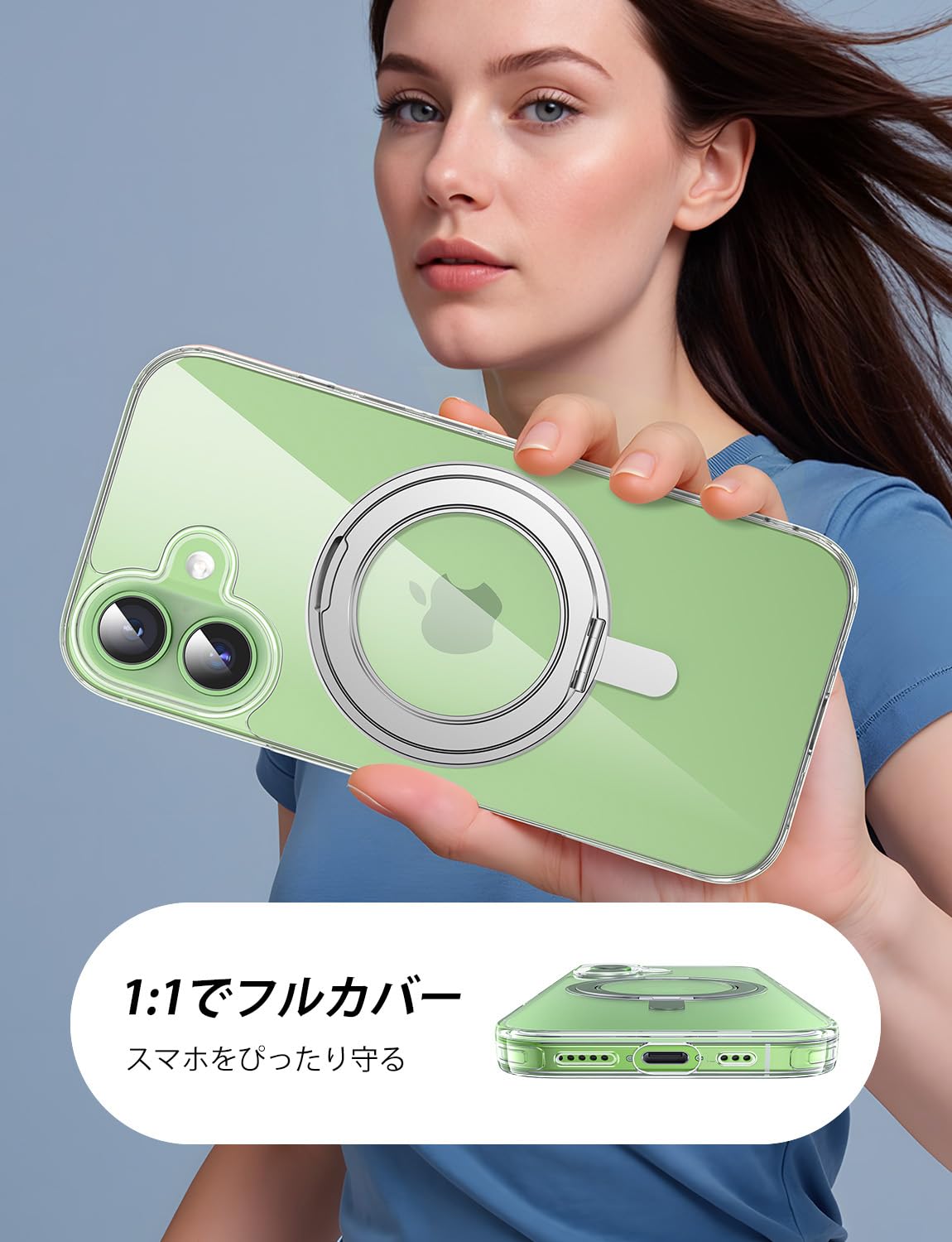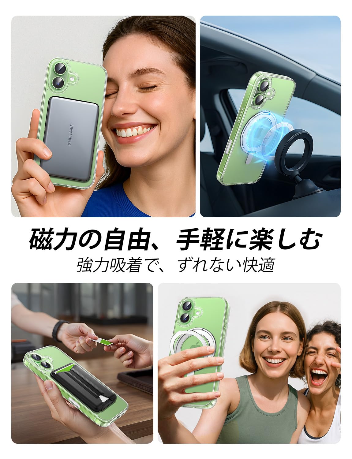 【MagSafe対応・ワイヤレス充電】強力な磁石を内蔵しており、ケースを装着したままでスマホのワイヤレス充電が可能です。また、冷蔵庫や壁、キッチンなどの金属面に貼り付けることができ、日常生活で便利にお使いいただけます