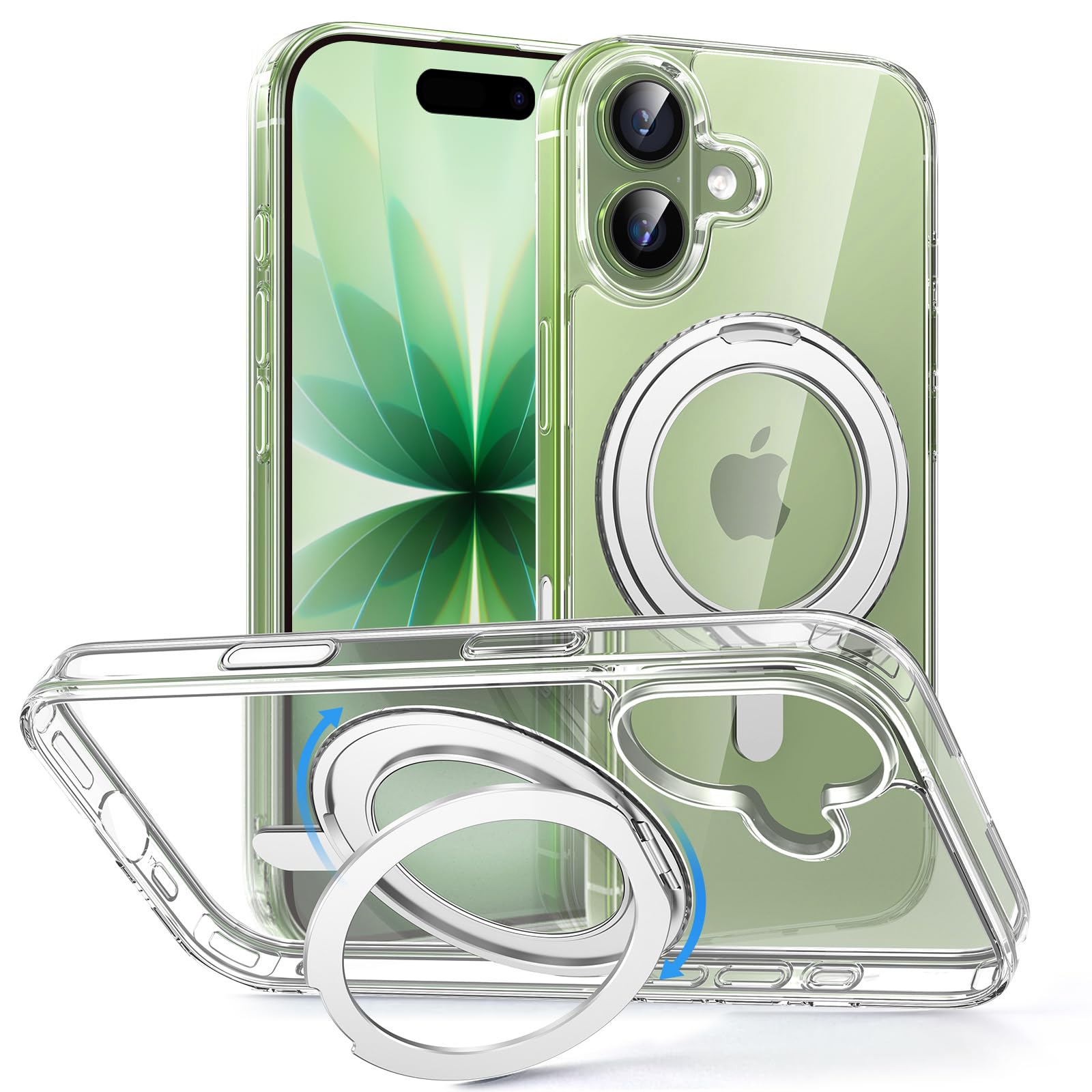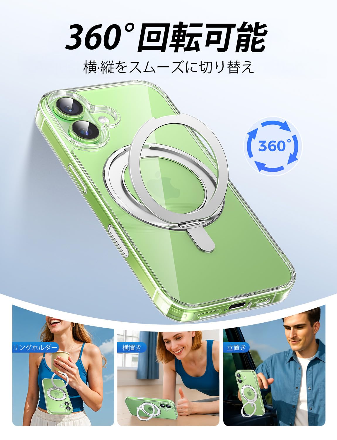 MAGIC JOHN 対応 iPhone 17用 ケース ハード クリア 高透過率 耐黄変 カメラコントロールに対応 スタンド付き 360°回転 MagSafe対応