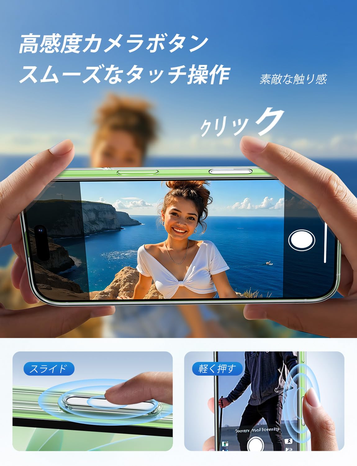 【軍用規格・細部へのこだわり】優れた衝撃吸収素材とエア保護構造を採用し、過酷な環境でも耐えることができるケースです。移動中にスマホを落としても、安心して使えます。本体をしっかり守るだけでなく、細部へのこだわりも徹底しています。縁部分はスマホの画面やカメラレンズより1.5mm以上高く設計されており、下向きに置いても画面やカメラが他の物と直接接触することなく、擦りなどからもしっかりと端末を保護します