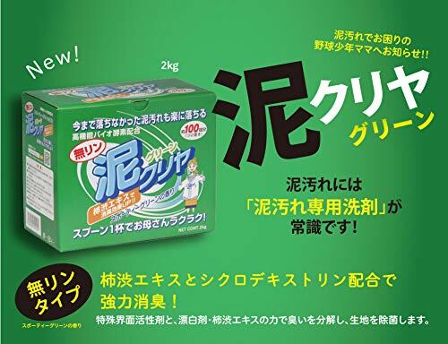 【数量限り】無リン!泥汚れ用洗濯洗剤 泥クリヤグリーン 2kg入り お母さん楽々泥汚れ洗濯