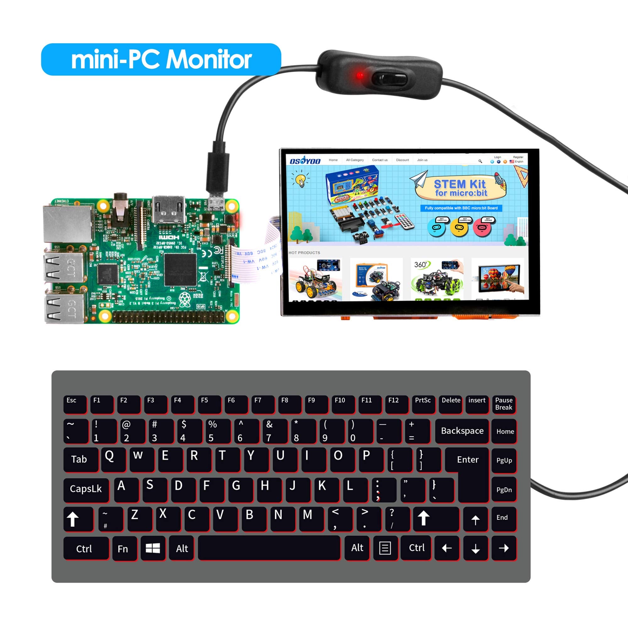 【新着特価】OSOYOO IPS 5 インチ TFT タッチスクリーン MIPI DSI コネクタ LCD ディスプレイ モニター Raspberry Pi 5 4 B 3 Model B+ 2 用 ラズベリーパイ