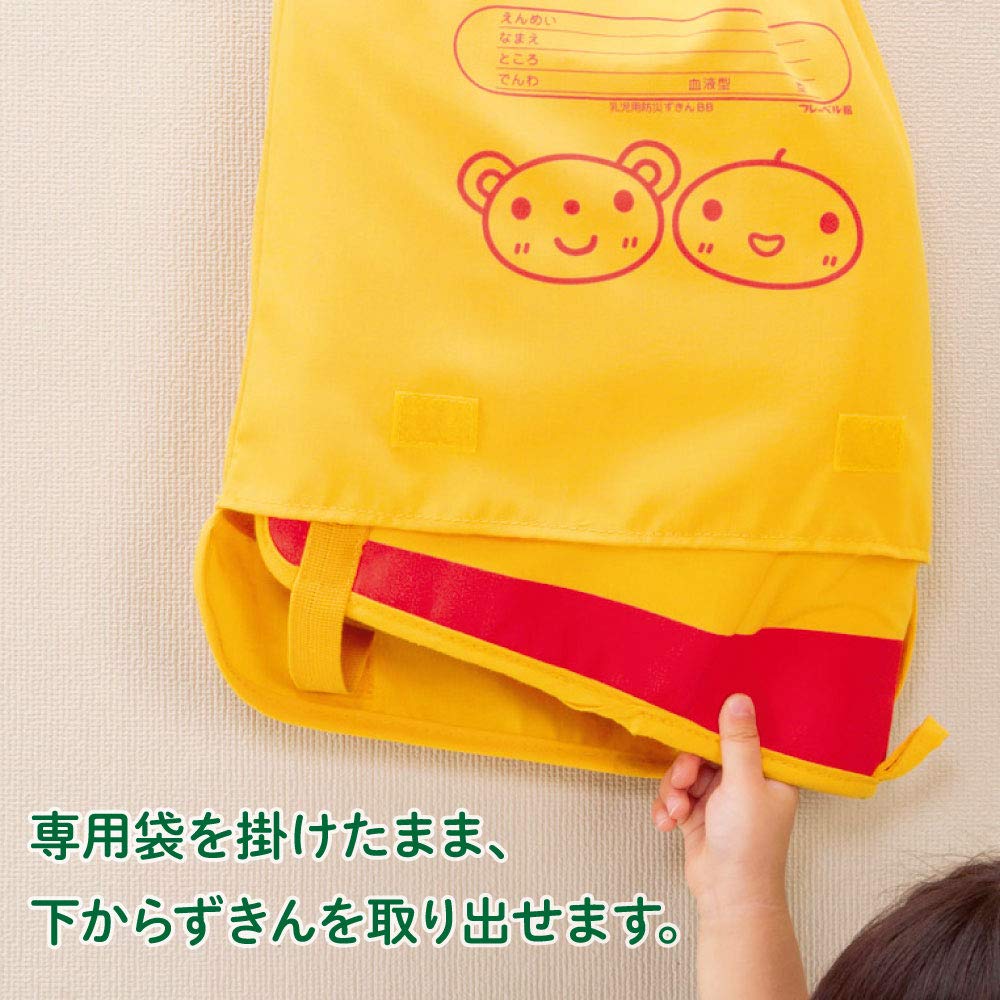 乳児用防災ずきんBB(専用袋付き)【フレーベル館の保育用品】 【日本防炎協会認定合格品】 セット内容:防災頭巾×1、専用袋×1 材質・仕様:(側地・芯材・専用袋)ポリエステル100%・防炎加工 サイズ:(防災頭巾)約30×23×厚さ8cm、(専用袋)約37.5×31.5cm フレーベル館オリジナル教材 かわいい&いざというとき目立つ黄色の防災頭巾!