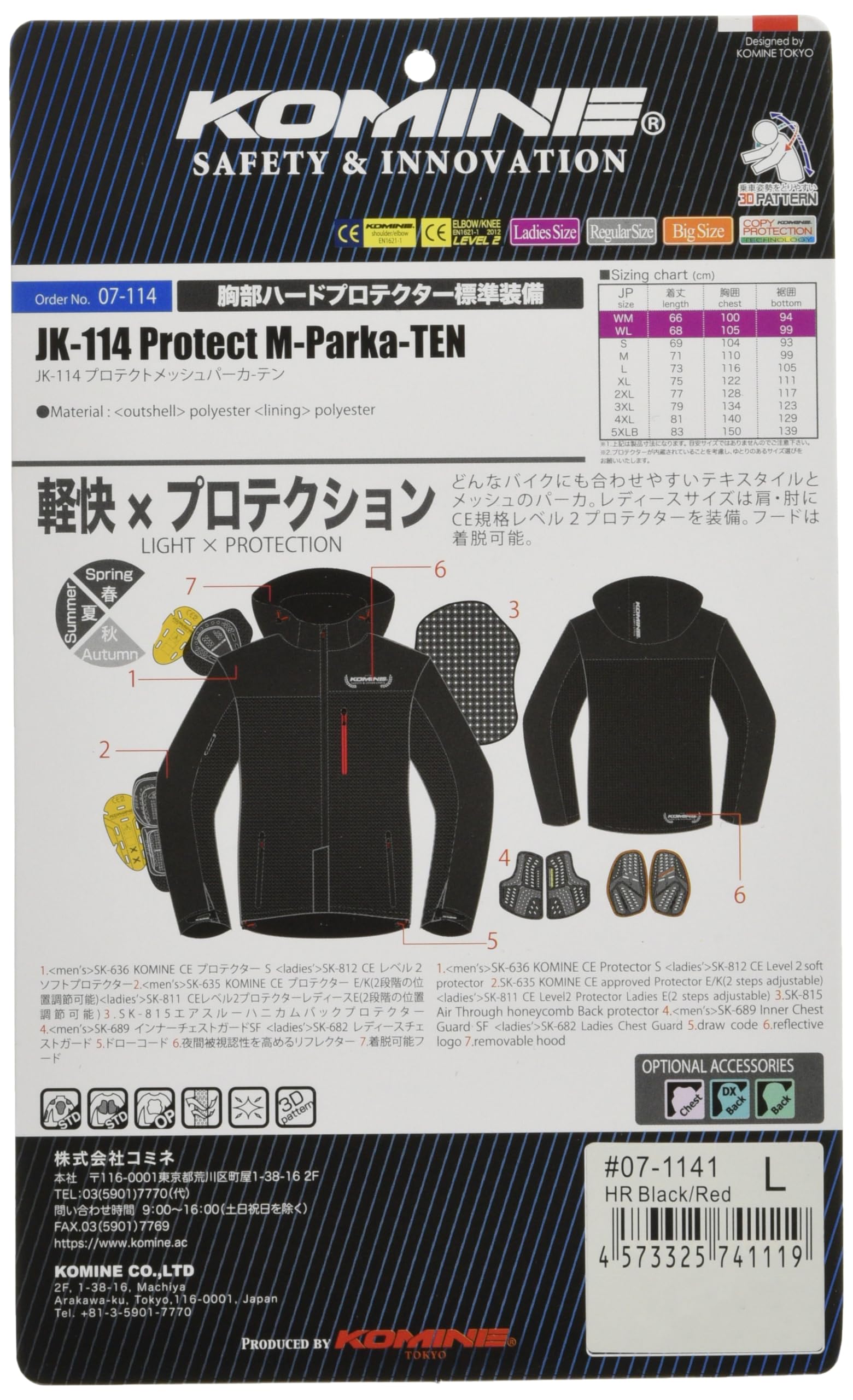 ![【在庫処分】[KOMINE] バイク用 ジャケット プロテクトメッシュパーカ-テン JK-114 1096 春夏秋向け プロテクター CE規格レベル2 メッシュ素材 07-114 メンズ HR BLACK/Red L](https://baseec-img-mng.akamaized.net/images/item/origin/910b5b24d5730c2ae47628f7c199e010.jpg?imformat=generic)
