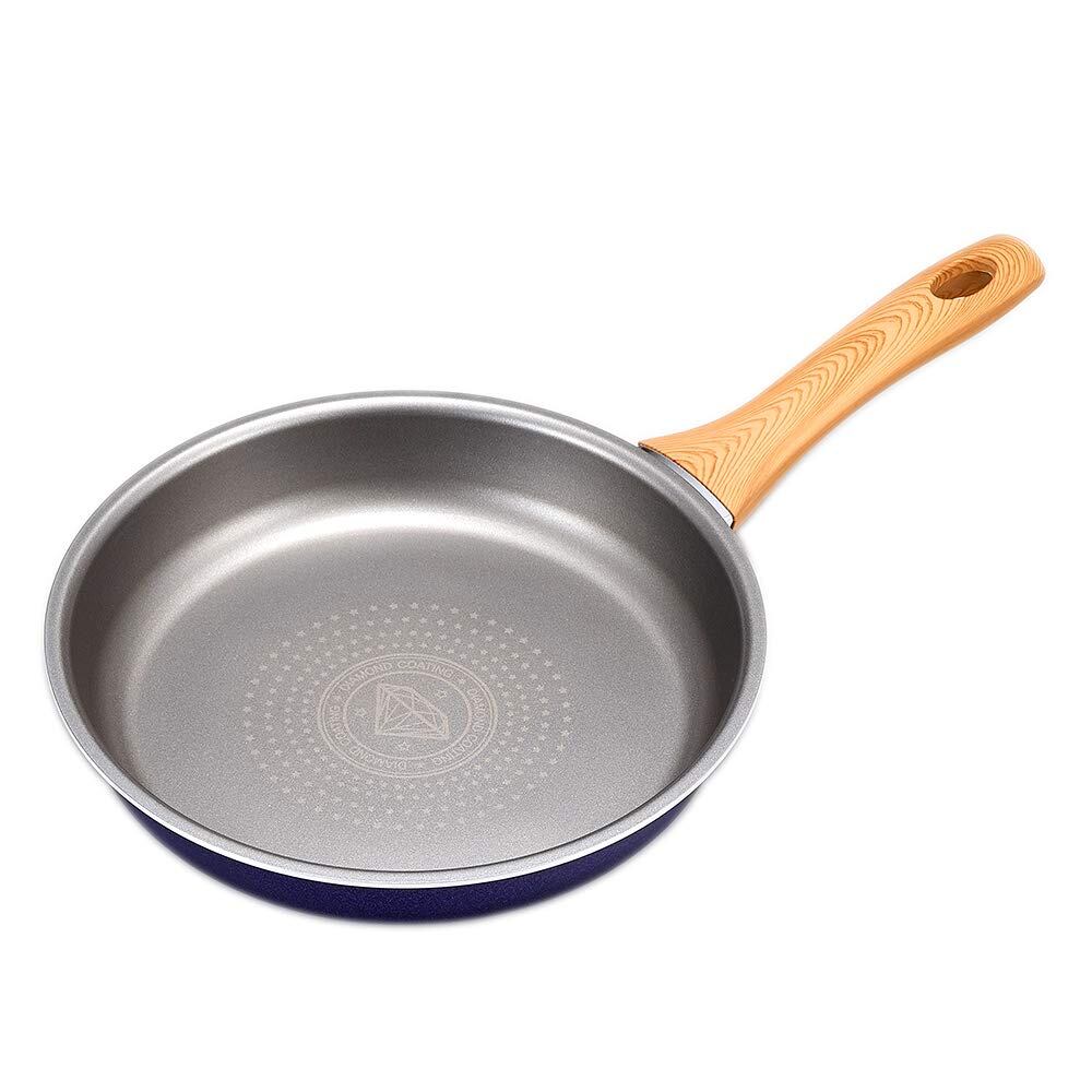 3.5mmの底厚で熱が均一に伝わりやすいIH対応フライパン。焦げ付きにくいからお手入れ楽々。手になじむ木目調のフィットグリップ。内面2層、外面2層の多層コート!内面は人工ダイヤモンド配合のふっ素樹脂コートで耐磨耗性が高く、外面はセラミックコートで汚れが落としやすい!