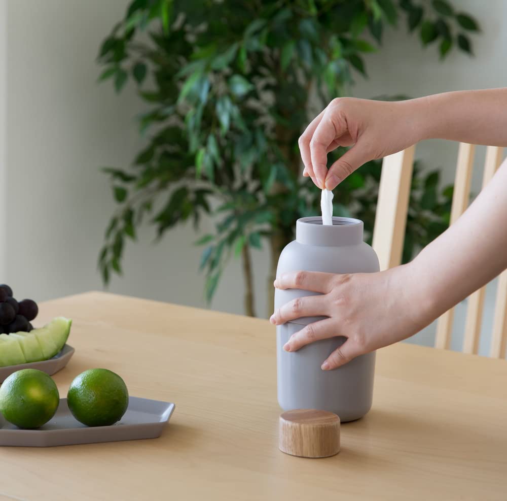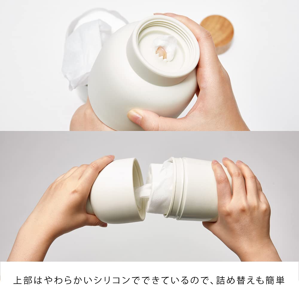 木蓋がウェットティッシュの乾きを防ぐ 3つのパーツ構造。