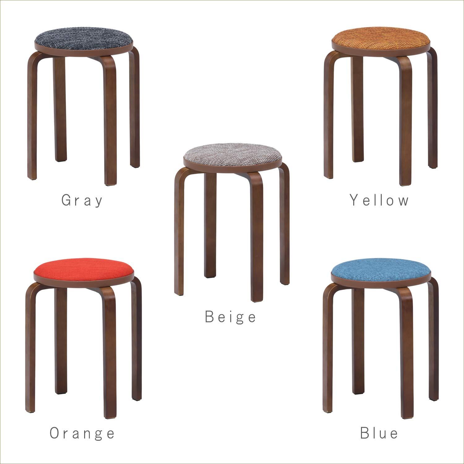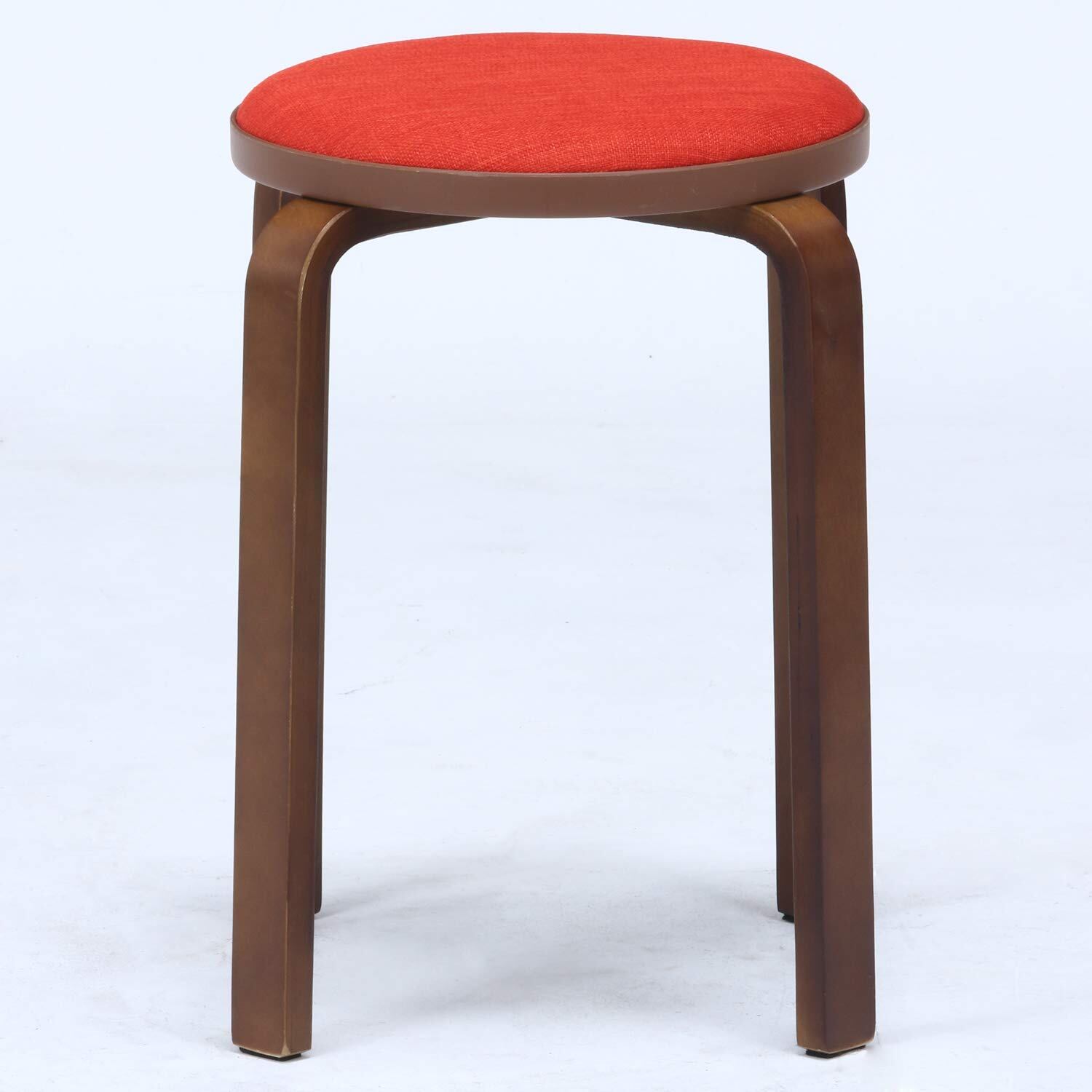 不二貿易 曲木スツール スタッキングチェア 幅32×奥行32×高さ47cm オレンジ ブラウン ファブリック コンパクト 組立商品 14546
