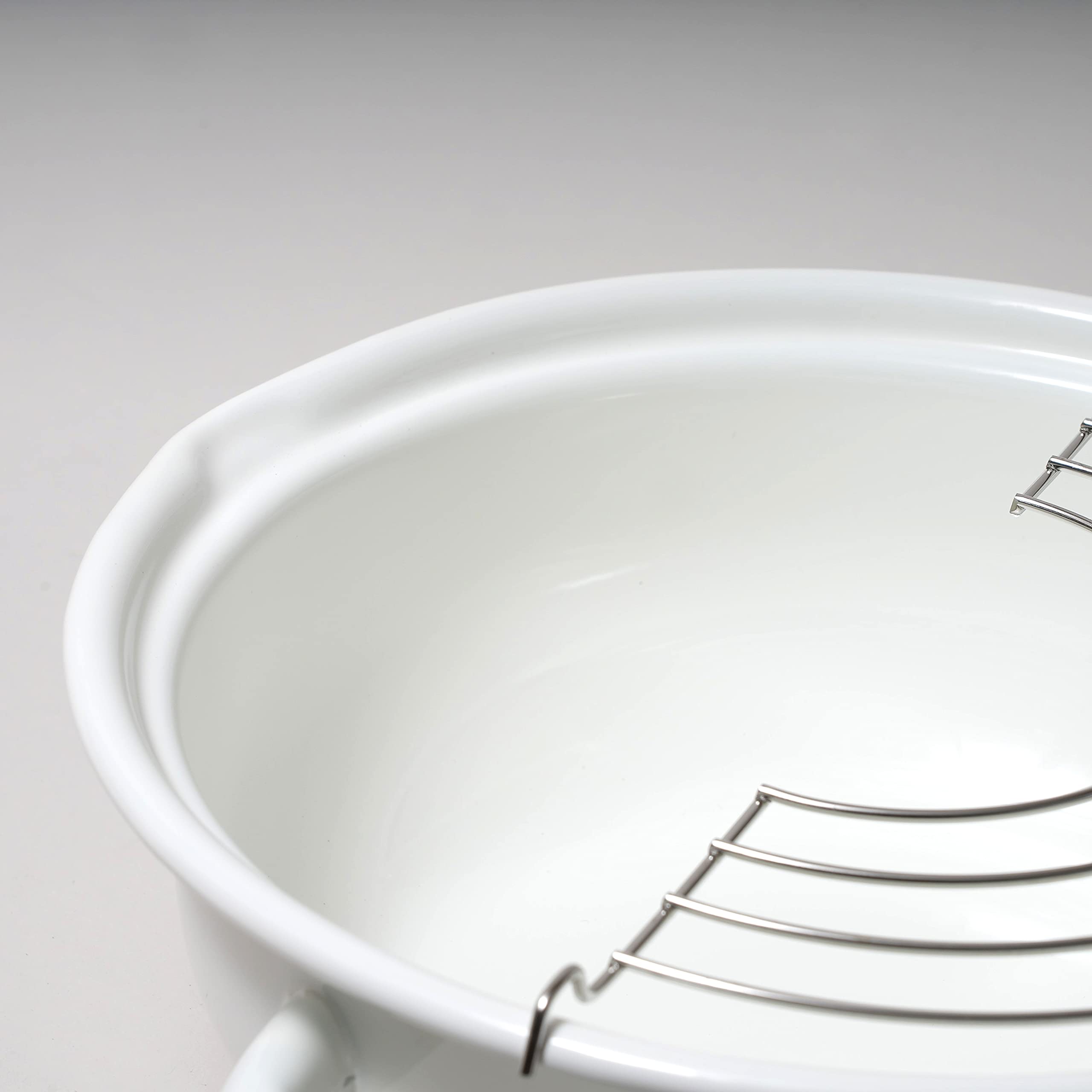 素材・材質:表面加工/ほうろう、材料の種類/本体/ほうろう用鋼板(底の厚さ0.8mm)、取っ手/ほうろう用鋼板、アミ/鉄(クロムめっき)