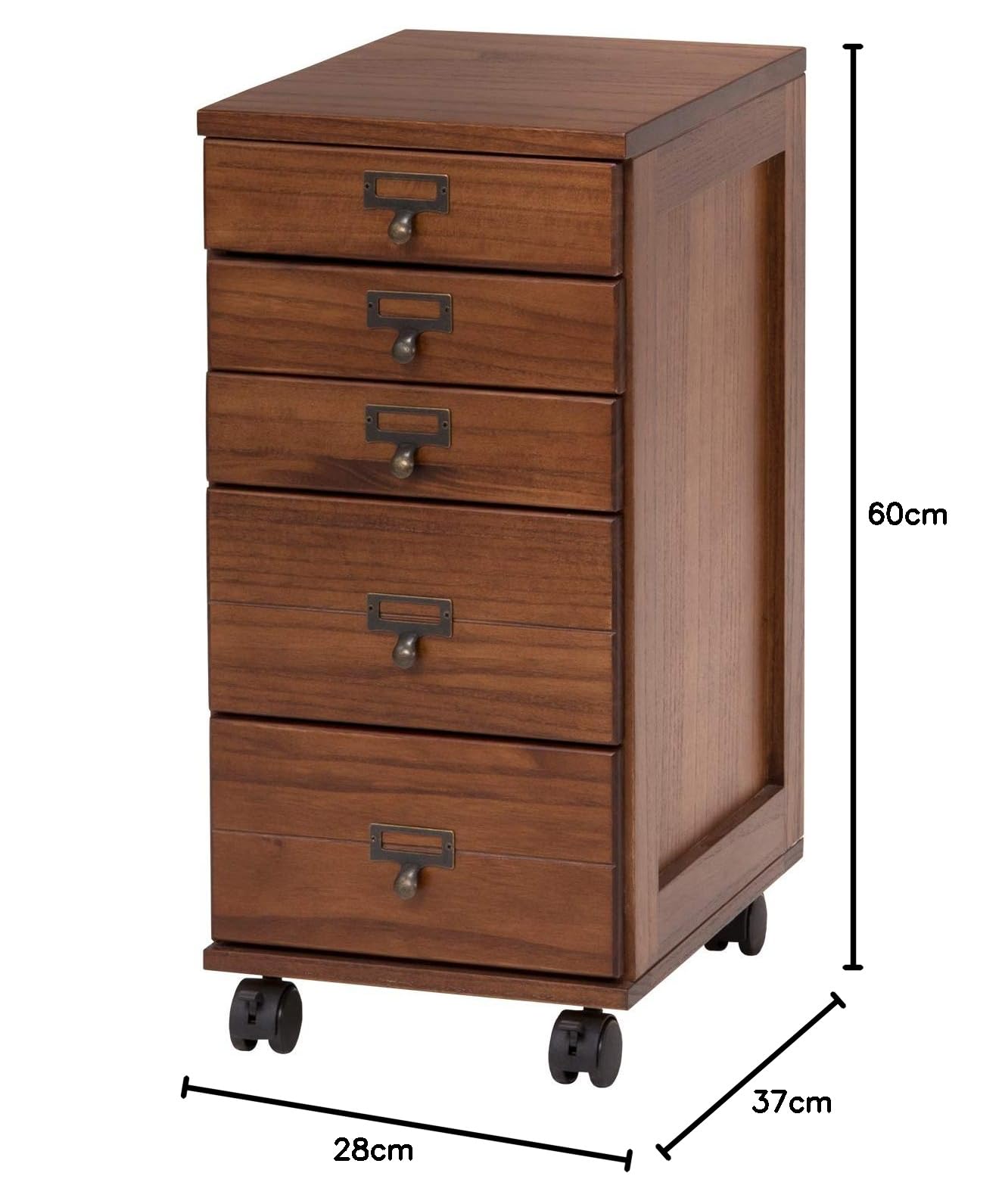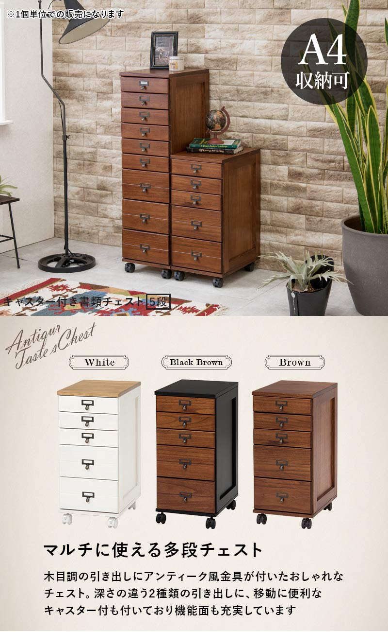 萩原(Hagihara) 多段チェスト 書類チェスト 書類 棚 A4 引出5段 【すぐに使えるほぼ完成品】キャビネット ドキュメント 天然木 ネームプレート付 キャスター付 ブラウン MCH-6170BR