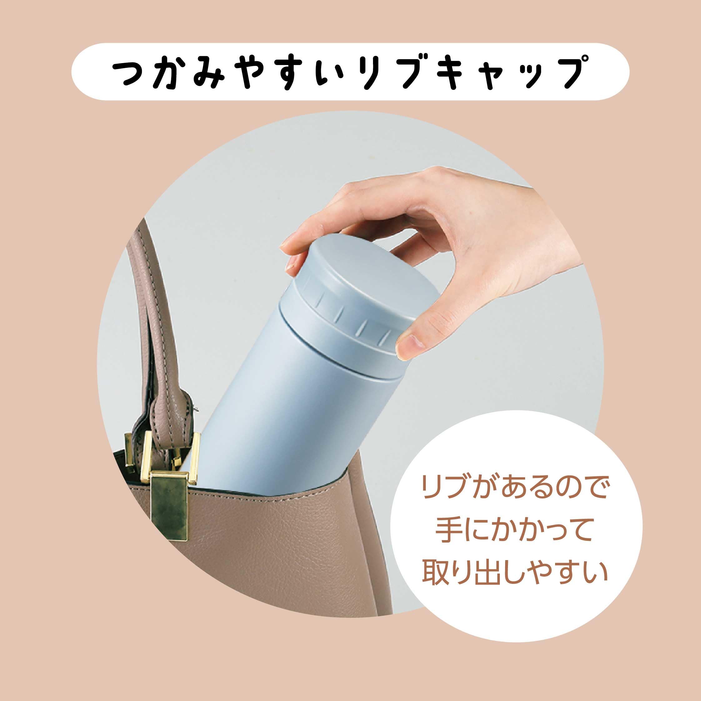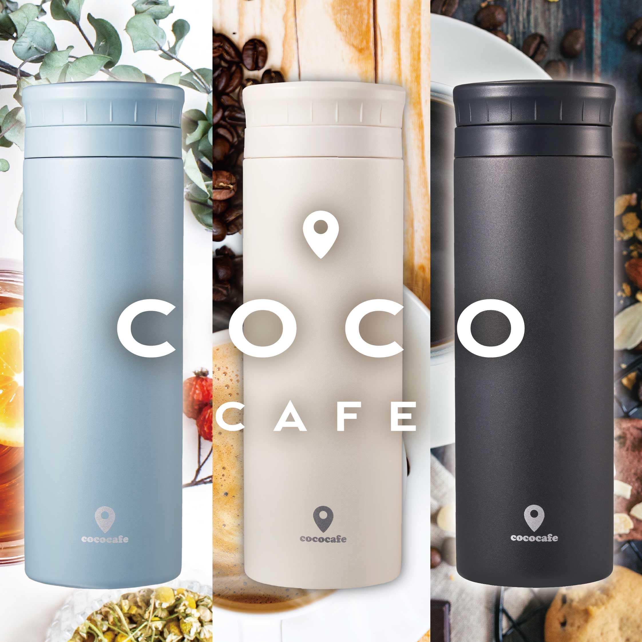 【COC CAFE】ココカフェ ホッとひと休み。ここがいつものカフェになる。 <商品特徴> ◎開けるも閉めるもクイッとカンタン半回転(140°)。 ◎リブがあるので手にかかって取り出しやすい。 ◎グッと掴んでしっかり回せる開けやすいフタ形状。 キズや剥げに強く、指紋が付きにくいパウダーコート。サラサラ触感。 ◎氷ストッパー付き。熱い飲み物の飛び出し防止にも! <商品仕様> 保温効力:66℃以上、保冷効力:9℃以下(6時間) ●商品サイズ:直径70×217mm(満水:540ml) ●重量:260g ●素材:内ビン/ステンレス鋼(クロム18%・ニッケル8%)、胴部/ステンレス鋼(粉体塗装)、フタ栓・中栓/ポリプロピレン、パッキン/シリコーンゴム