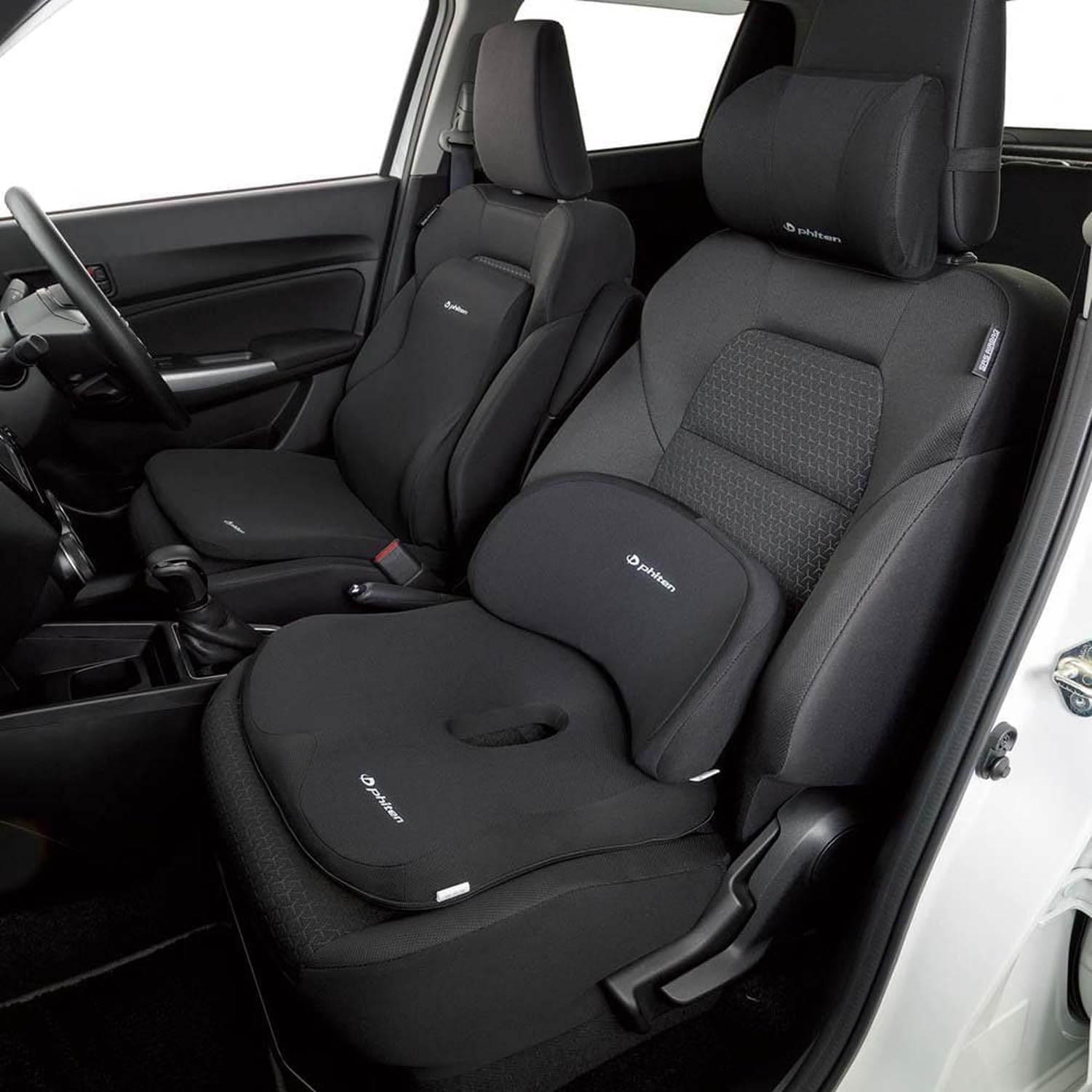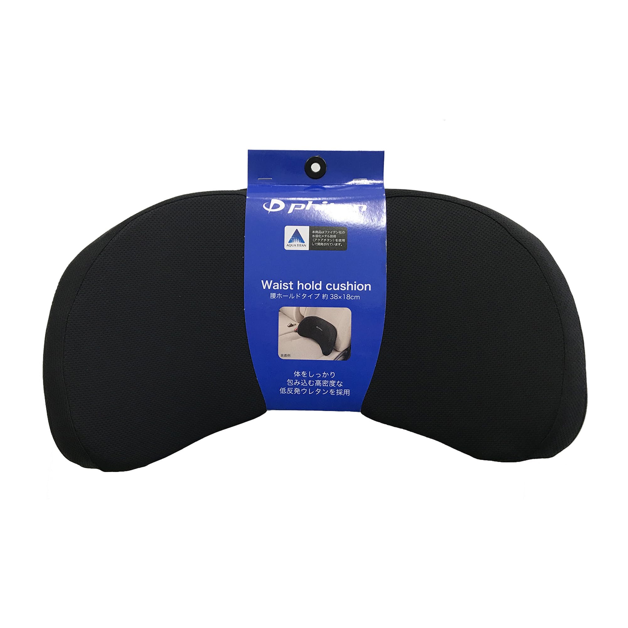 ボンフォーム(BONFORM) シートクッション ファイテン 腰当て 38×18cm ブラック アクアチタン使用 低反発 サポートクッション 腰ホールドタイプ 腰痛 疲労対策 phiten 5815-76BK
