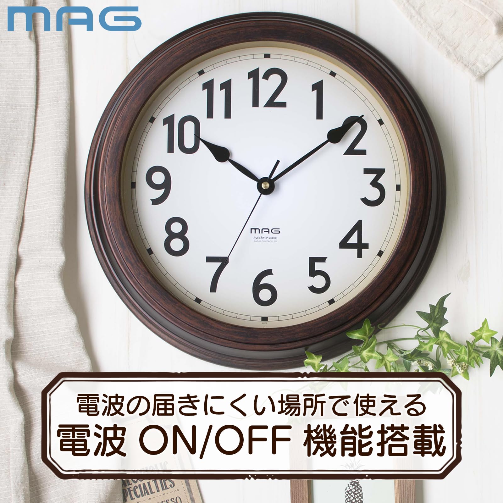 MAG(マグ) 掛け時計 壁掛け時計 電波時計 アナログ 静音 連続秒針 クラシック レトロ モダン 和室 木目調 インテリア 直径35.5㎝ 電波受信ON/OFF ブラウン 大正館 W-778 BR-Z ノア精密