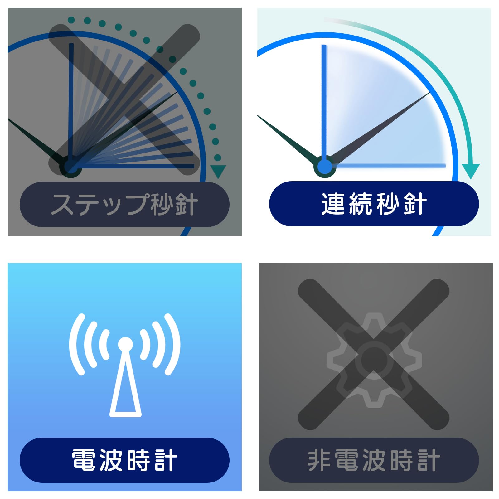 機能:電波受信機能(自動受信、手動受信)、連続秒針、電波受信ON/OFF機能